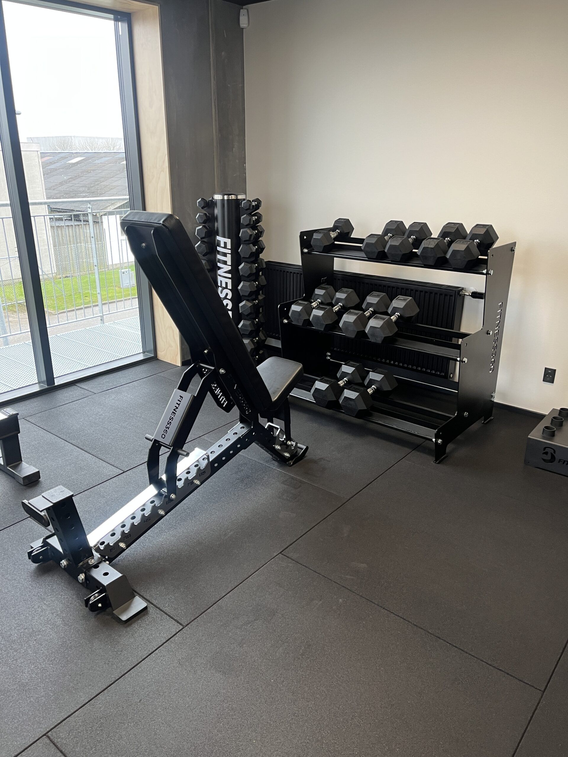 Hos ATOP har vi etableret et effektivt og pladsoptimeret træningsrum, hvor medarbejderne nemt kan få styrketræning og bevægelse ind i hverdagen. Løsningen er skræddersyet med robuste racks, justerbare bænke, håndvægte, elastikker og funktionelle træningsredskaber – alt sammen i et stilrent og kompakt setup, der udnytter rummet optimalt.