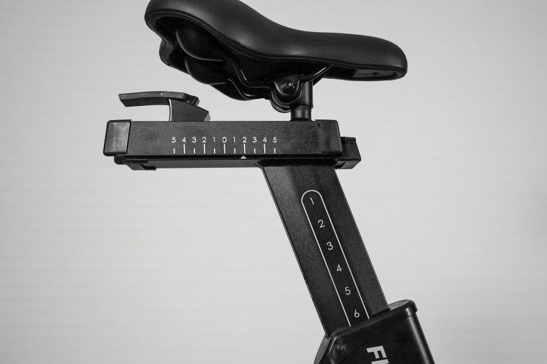 Sædet på cyklen kan nemt justeres i højden via drejeknappen bagpå. På aluminiumsrøret er der 10 højdejusteringsmuligheder. Sædet kan justeres fra 85 cm til 105 cm fra gulvet. Desuden kan sædet justeres frem eller tilbage via quick-release håndtaget, således du ikke behøver at stige af cyklen, for at justere sædepositionen.