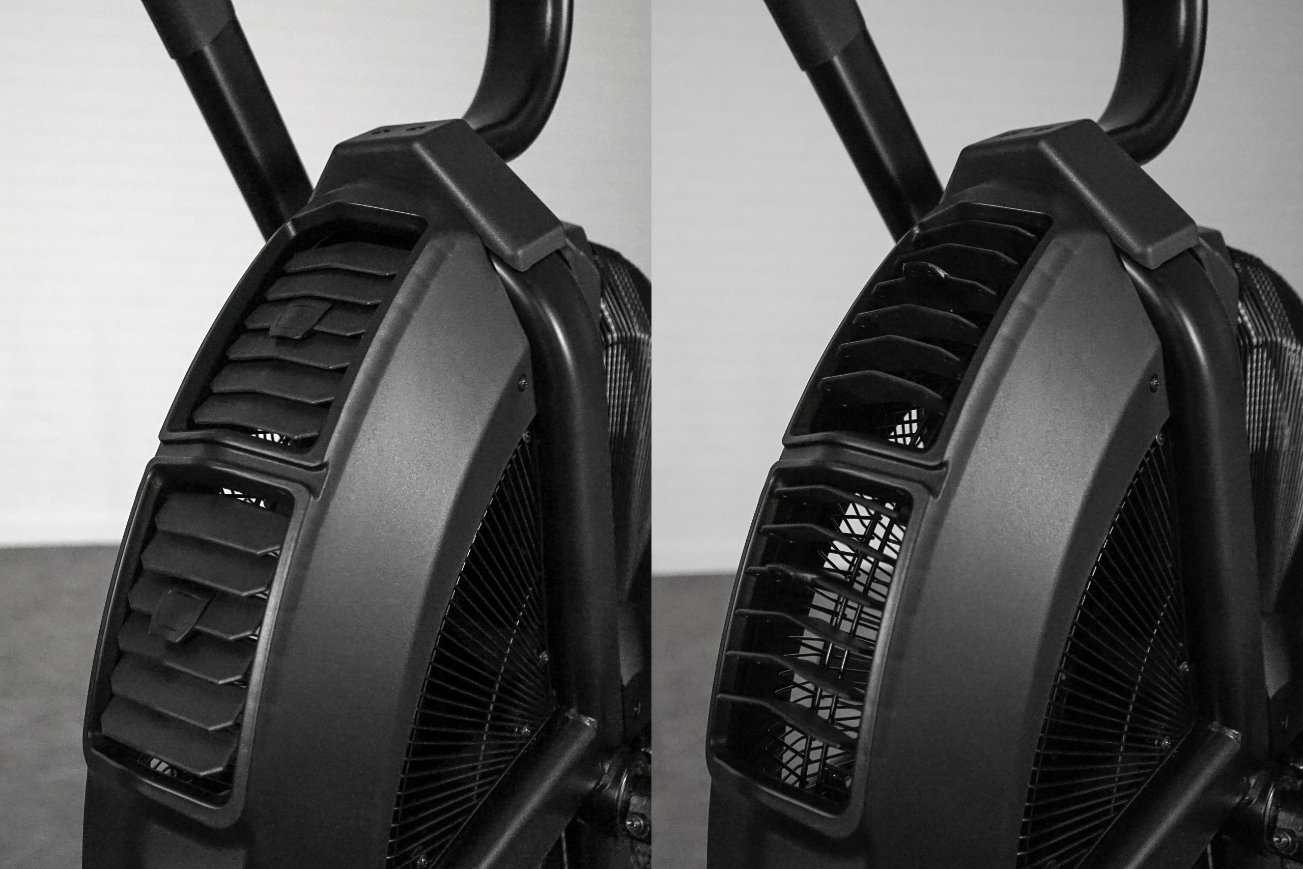 - Bæltetrukket: En stor fordel ved vores AirBike er, at den bruger et bælte til at trække svinghjulet rundt med. Mange andre Airbike’s på markedet bruger en kæde, hvilket gør dem mere støjende og vedligeholdelseskrævende. Bæltetræk giver desuden en mere flydende og ensartet træningsoplevelse, da den er ét sammenhængende led.