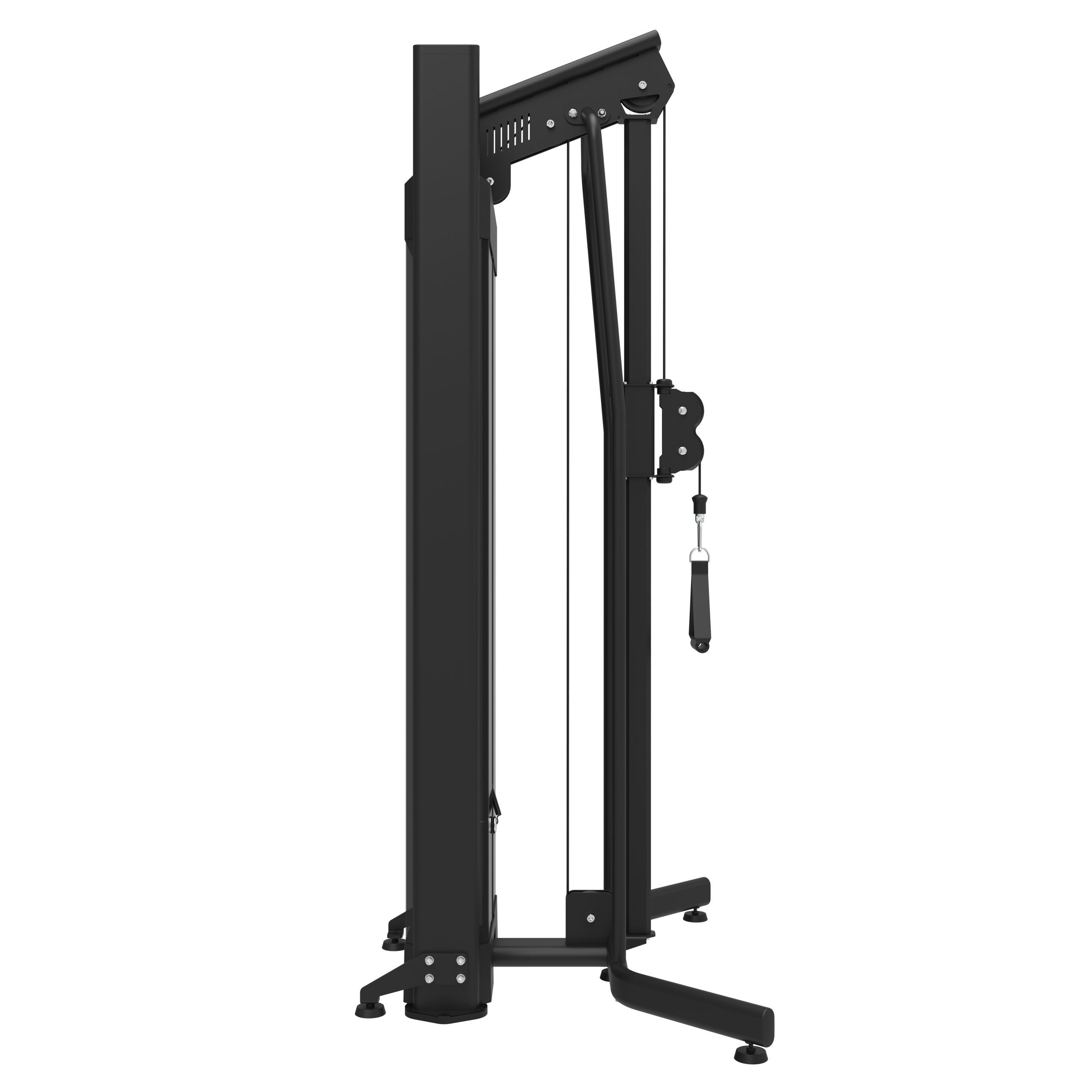 Vores professionelle Cable Station Single er det ideelle valg til træningsfaciliteter med begrænset plads, som stadig ønsker at tilbyde et bredt udvalg af træningsmuligheder. Kabeltrækket kan justeres i forskellige højder, hvilket giver mulighed for at skifte mellem høje og lave positioner afhængigt af øvelse og fokusområde. Maskinen er udstyret med et vægtmagasin på 95 kg, hvilket sikrer en bred spændvidde for både begyndere og erfarne brugere. Derudover giver muligheden for at påføre forskellige håndtag og tilbehør en enorm variation af øvelser til både overkrop og underkrop.