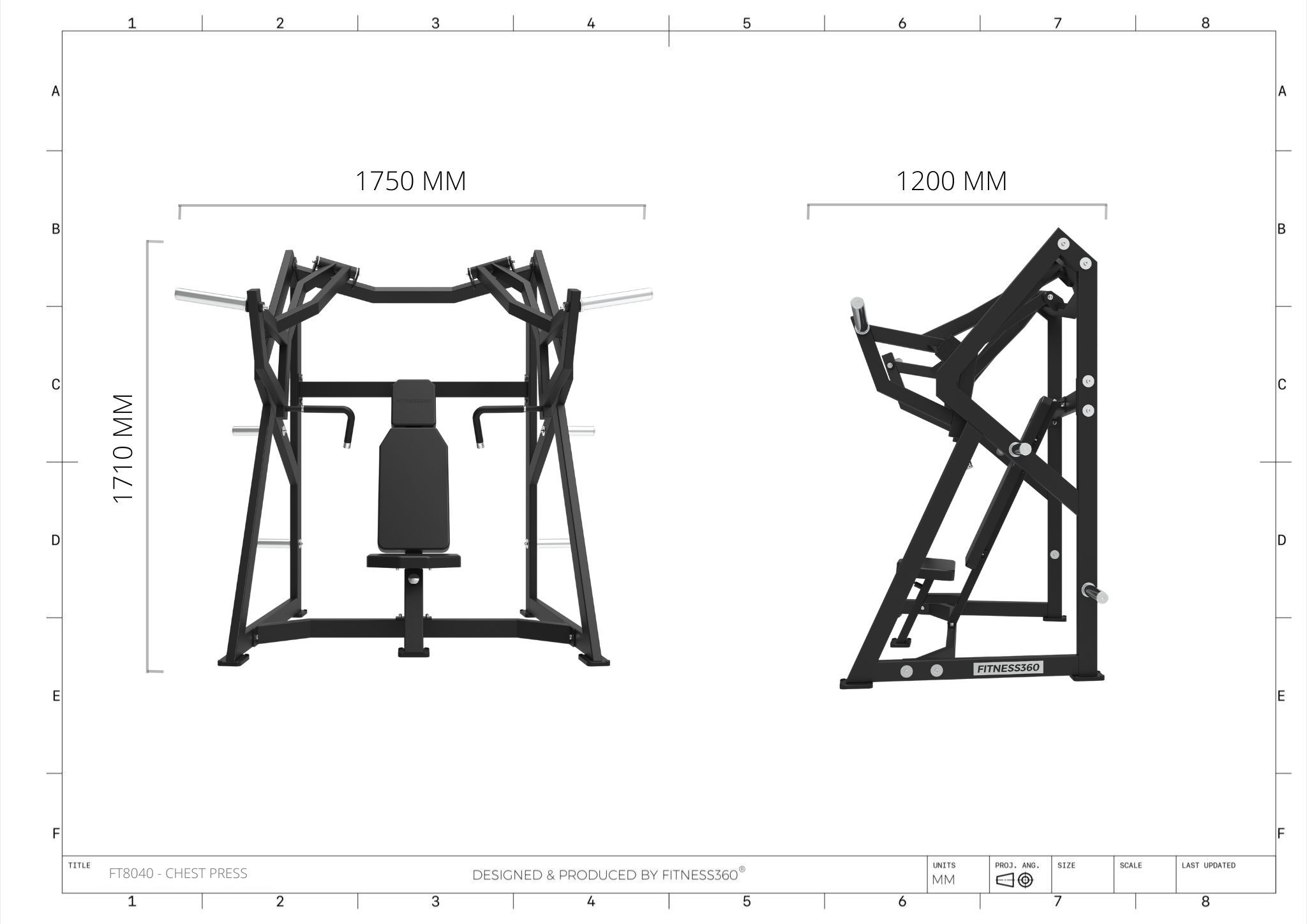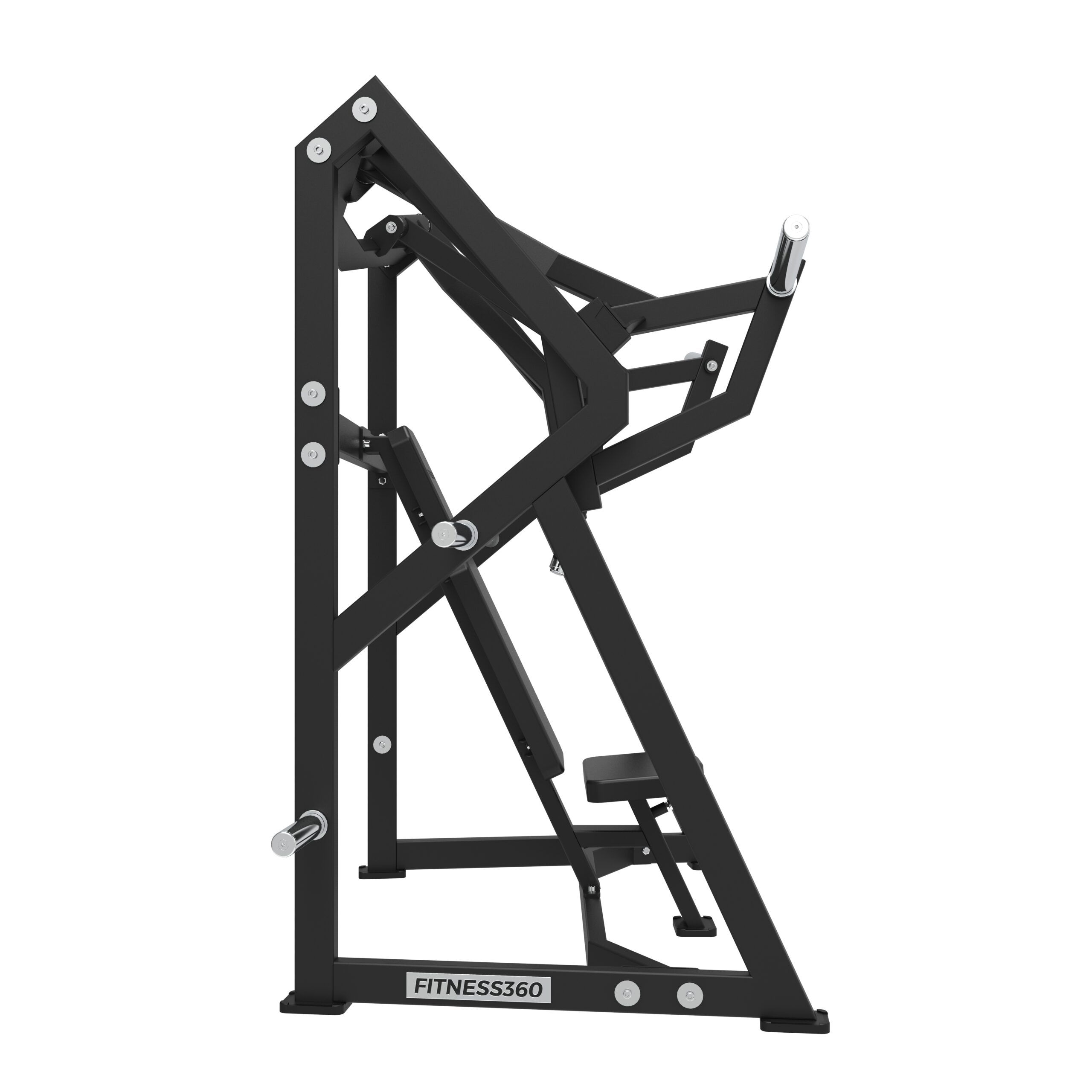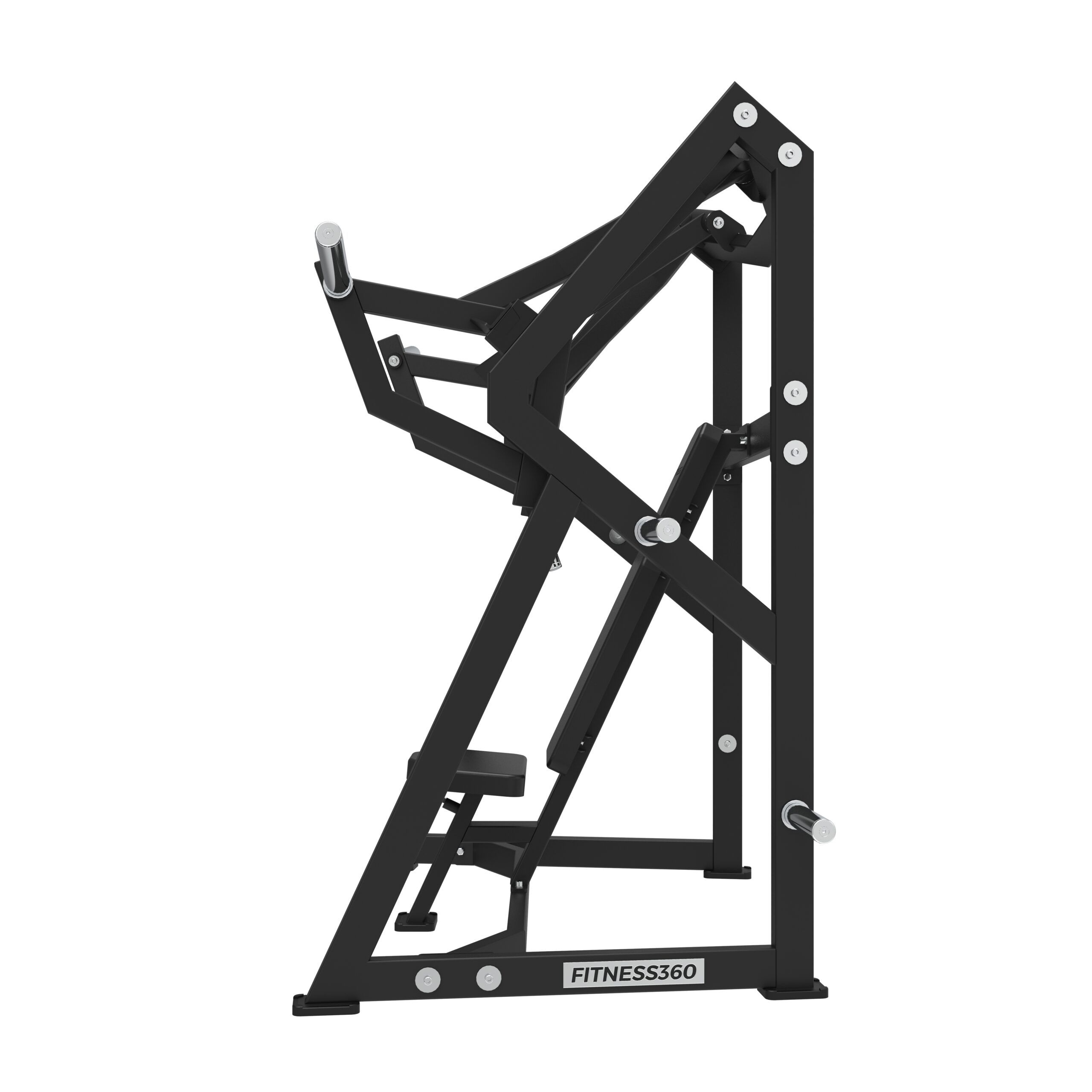 Stellet er produceret i en solid stålkonstruktion med et laserskåret FITNESS360-logo. Sæderne er udført i et robust materiale med varmetrykt FITNESS360-logo. Maskinerne i denne serie er uden vægtmagasin, der er derimod påført nogle “load sleeves”, som giver brugeren fri mulighed til at vælge belastningen med vægtskiver.