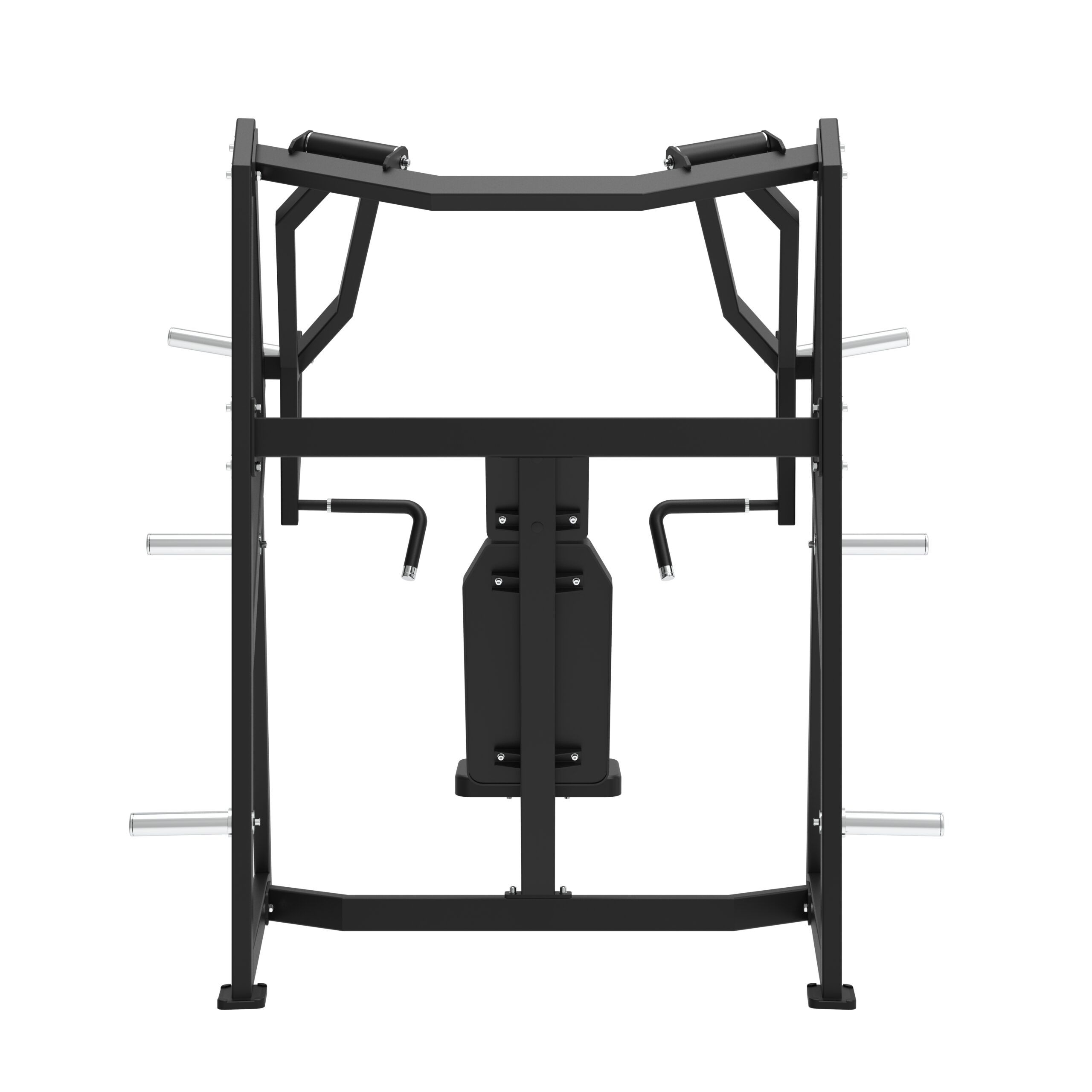 Vores professionelle Chest Press maskine er designet til effektivt at målrette brystmusklerne i en siddende position. Maskinen er udstyret med to forskellige grebspositioner med anti-slip. Dertil justerbart sæde, hvilket giver brugeren mulighed for let at indstille startpositionen for øvelsen. Maskinen har to “load sleeves” på armene til belastning med alle Ø50 mm vægtskiver. Der er desuden monteret to vægtskive pins på hver side af maskinen til opbevaring af vægtskiver.