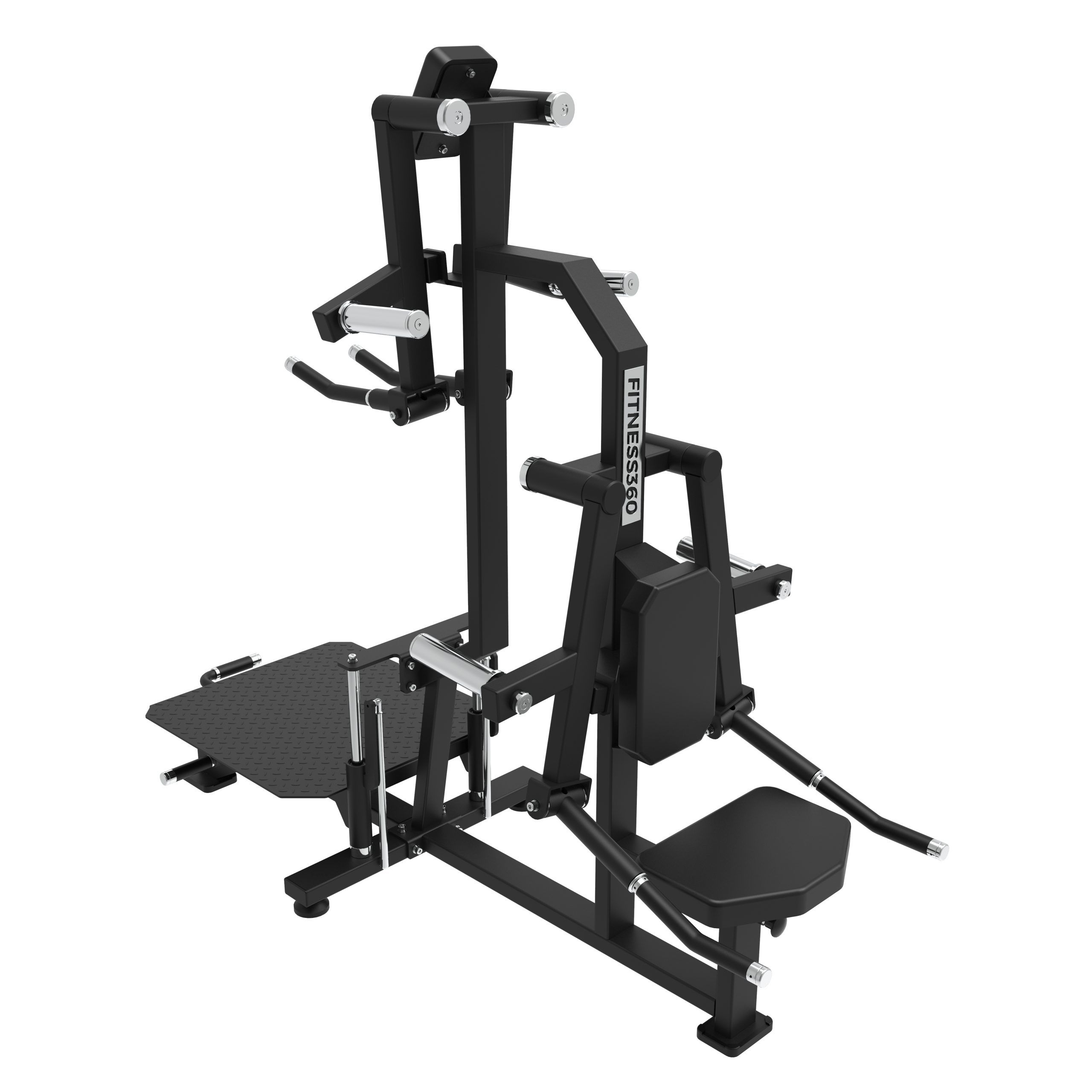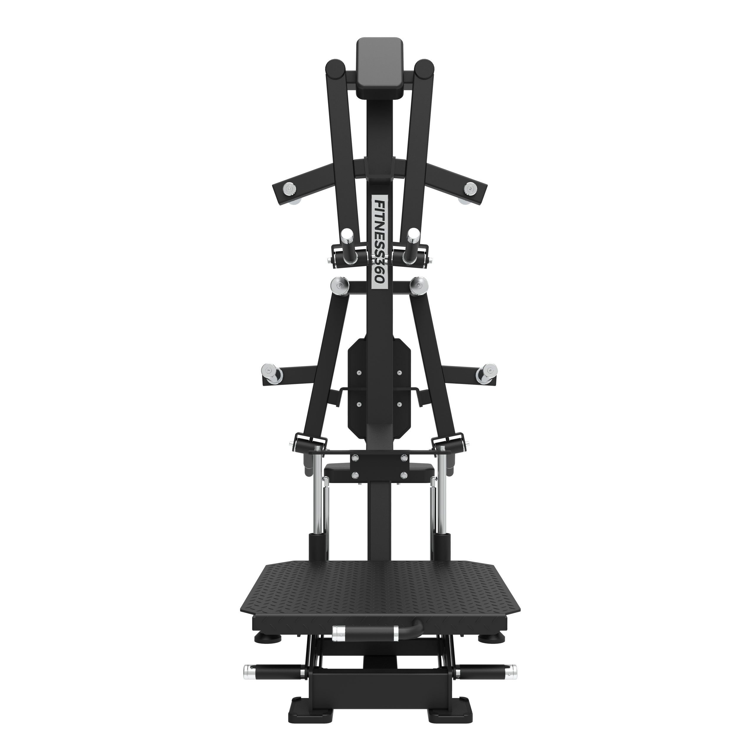 Stellet er produceret i en solid stålkonstruktion med et laserskåret FITNESS360-logo. Sæderne er udført i et robust materiale med varmetrykt FITNESS360-logo. Maskinerne i denne serie er uden vægtmagasin, der er derimod påført nogle “load sleeves”, som giver brugeren fri mulighed til at vælge belastningen med vægtskiver.