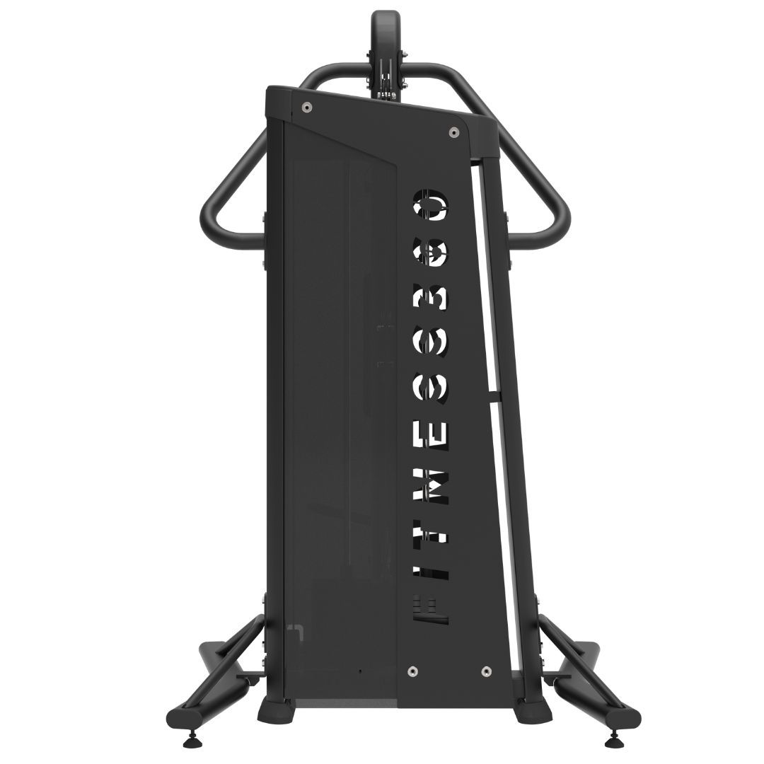 Maskinerne i denne serie har en minimalistisk og stilren “kasse” til vægtmagasinet. Kassen består af mørktonet plexiglas og en stålplade med laserskåret Fitness360 logo. Kassen fremstår således meget “luftig” og giver et eksklusivt udtryk i centeret.