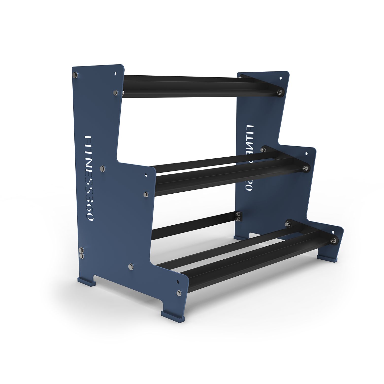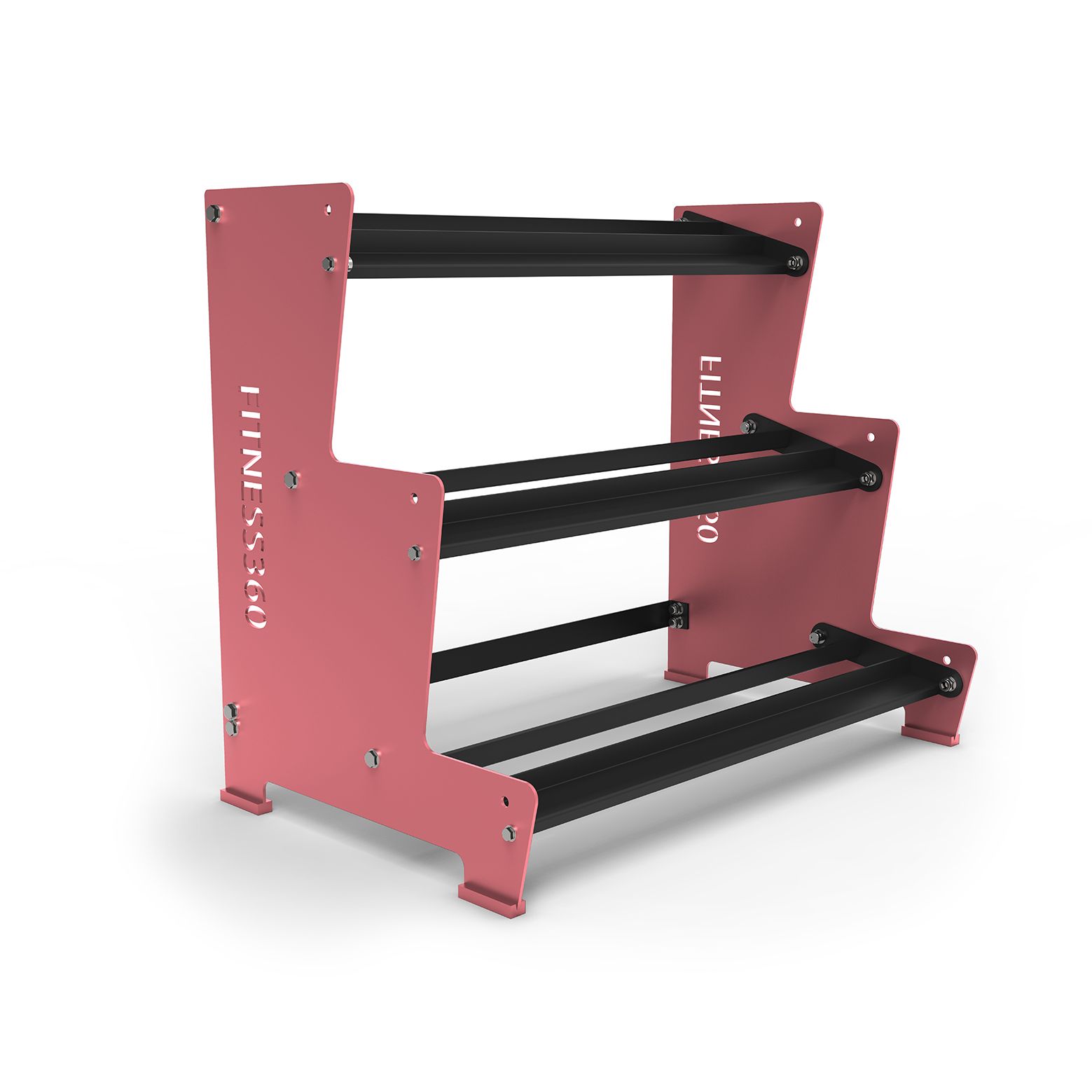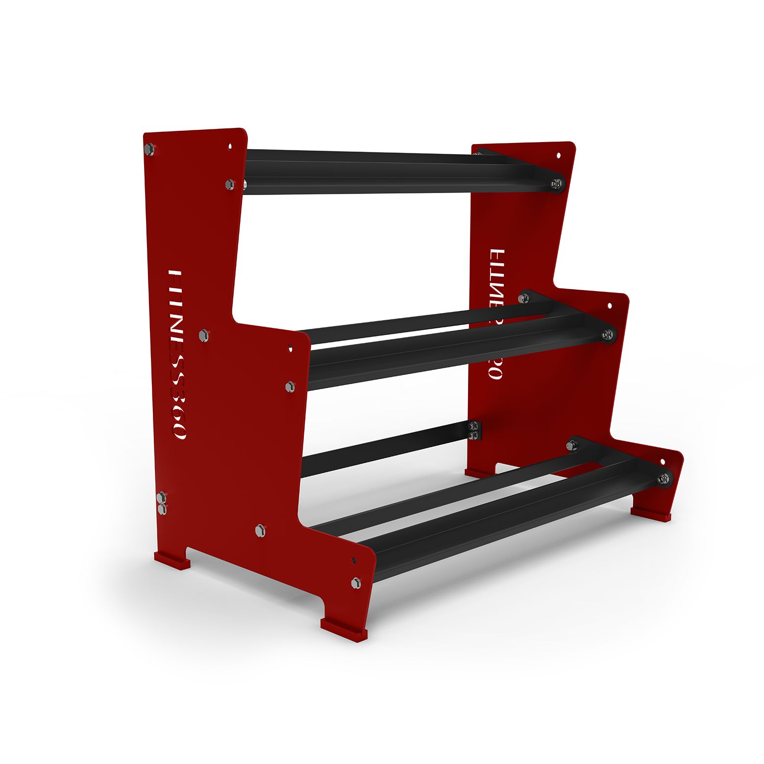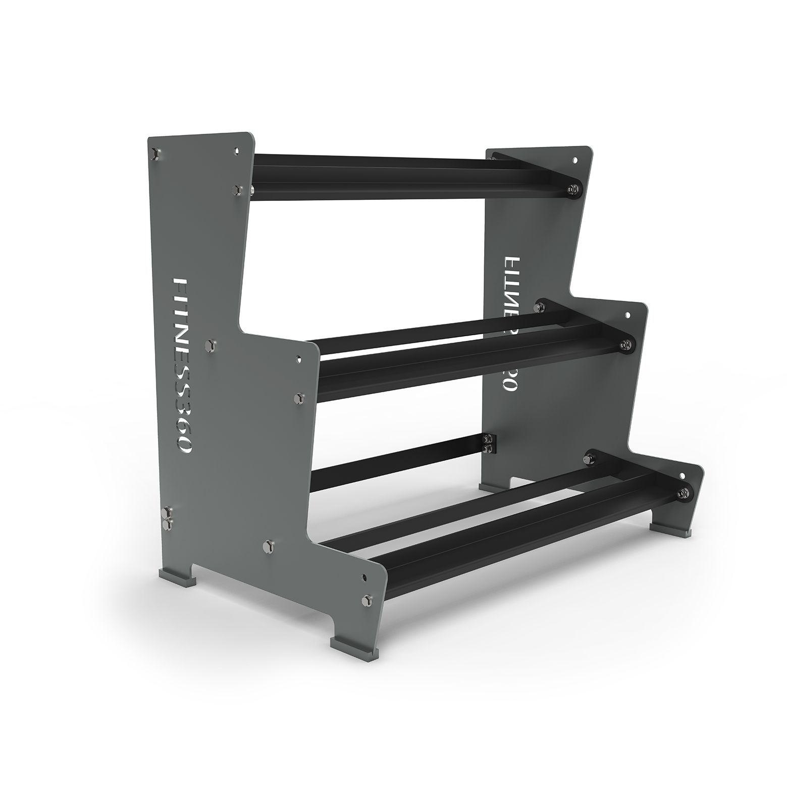 Med vores Fitness360 stativ til håndvægte får du først og fremmest et stabilt og funktionelt opbevaringssystem i høj kvalitet. Siderne har en højde på 106 cm og en bredde på 79 cm og er fremstillet af 6 mm pulverlakeret stål. For en stabil konstruktion, er der monteret en stabilitetsbar bagpå, som sikrer både stabilitet og holdbarhed på stativet. Vi bruger desuden kraftige M16 bolte på alle vores opbevaringsløsninger.