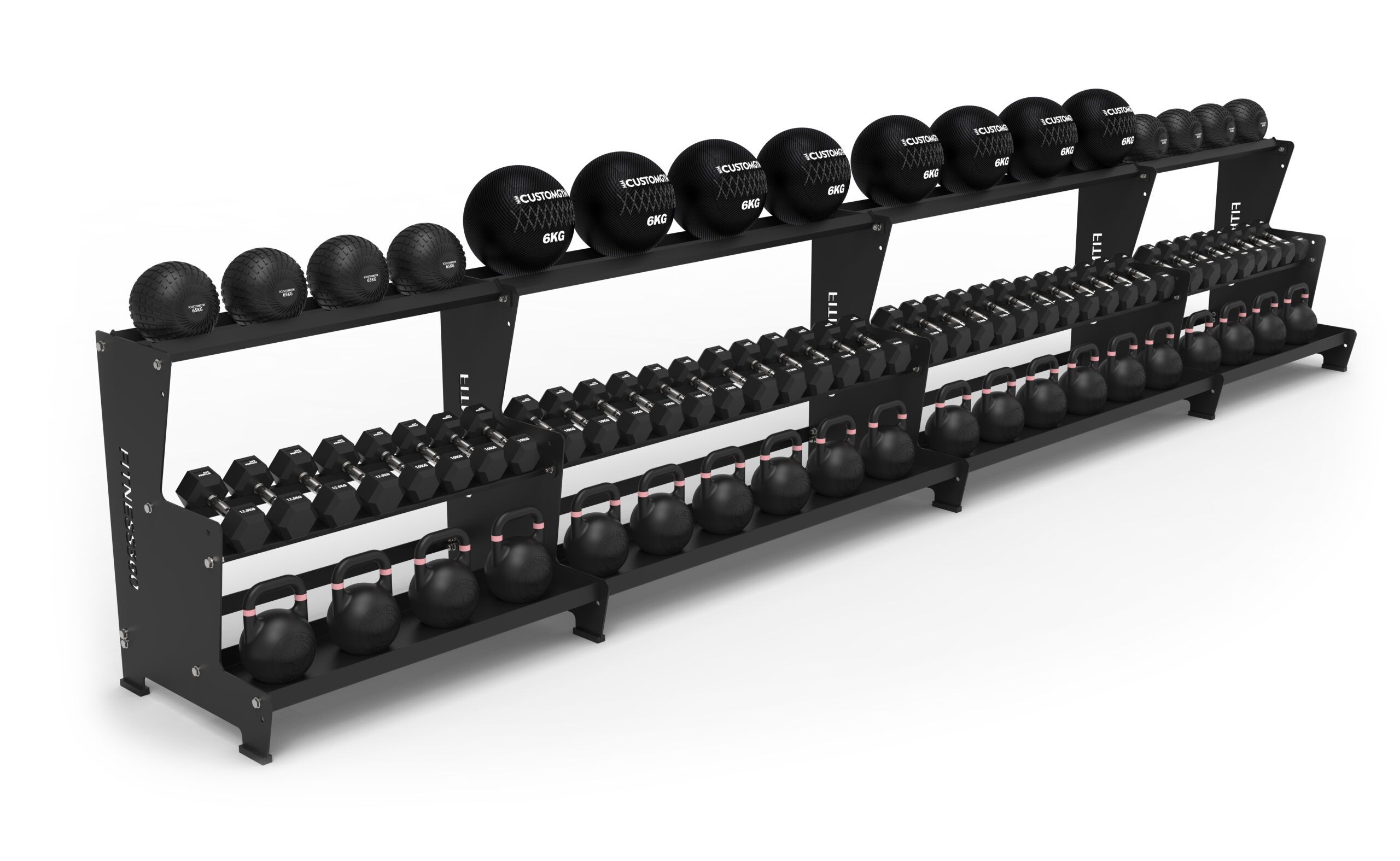 Der findes 3 hyldevarianter til dette stativ. Det er muligt at mix og match disse, alt efter hvad dine behov er. Vælg mellem håndvægtshylde, kettlebell hylde eller en hylde til vægtskiver og bolde. Det er desuden muligt at tilkøbe ekstra tilbehør i form af en vægtskiveseperator, der kan monteres på en hylde til vægtskiver og bolde.