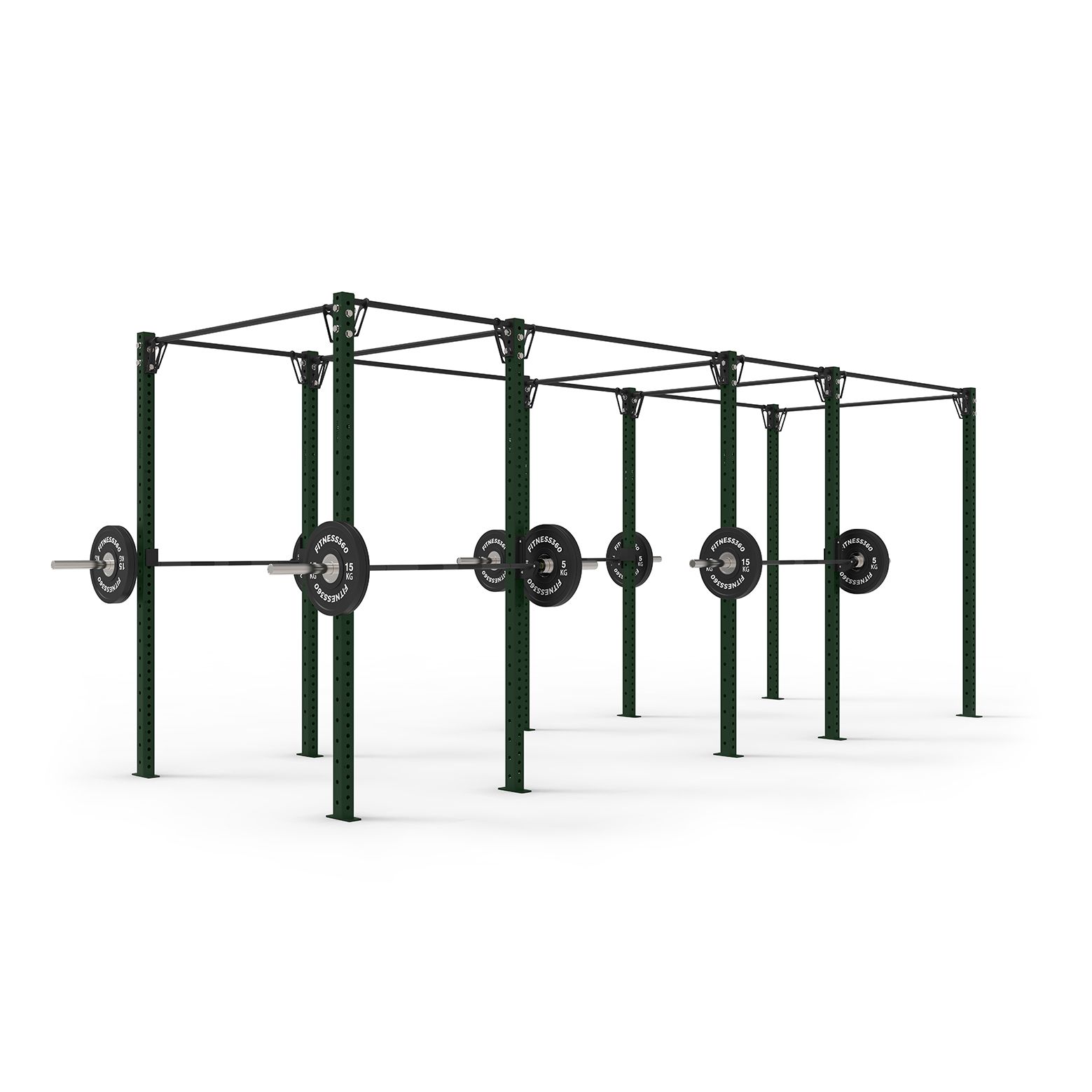 I denne fritstående konstruktionsserie giver vi dig flere standard varianter. Som udgangspunkt anbefaler vi 1 squat station for hver bruger som skal bruge stativet samtidig. Dette er en tommelfingerregel i forhold til plads mellem brugerne i forskellige øvelser som squat, dip, landmine core træning, kast af wallballs til target m.m.. Skal stativer kun bruges til simple pull up øvelser, TRX træning eller lignende, kan man derimod gøre brug af størstedelen af pull up barene samtidig, her vil man så tage udgangspunkt i 1 bruger pr. pull up bar. Har du brug for flere stationer, kan du se udvalget for flere fritstående varianter her
