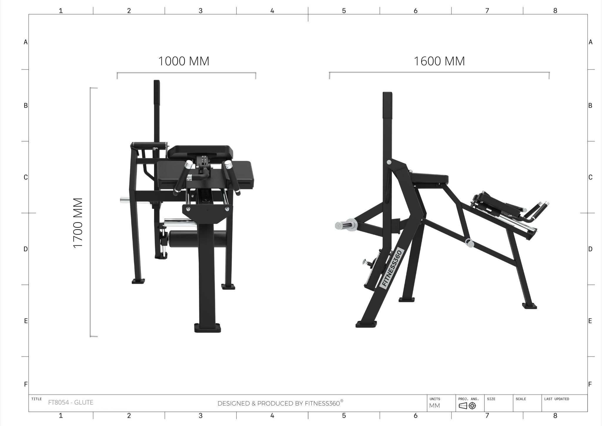 Stellet er produceret i en solid stålkonstruktion med et laserskåret FITNESS360-logo. Sæderne er udført i et robust materiale med varmetrykt FITNESS360-logo. Maskinerne i denne serie er uden vægtmagasin, der er derimod påført nogle “load sleeves”, som giver brugeren fri mulighed til at vælge belastningen med vægtskiver.