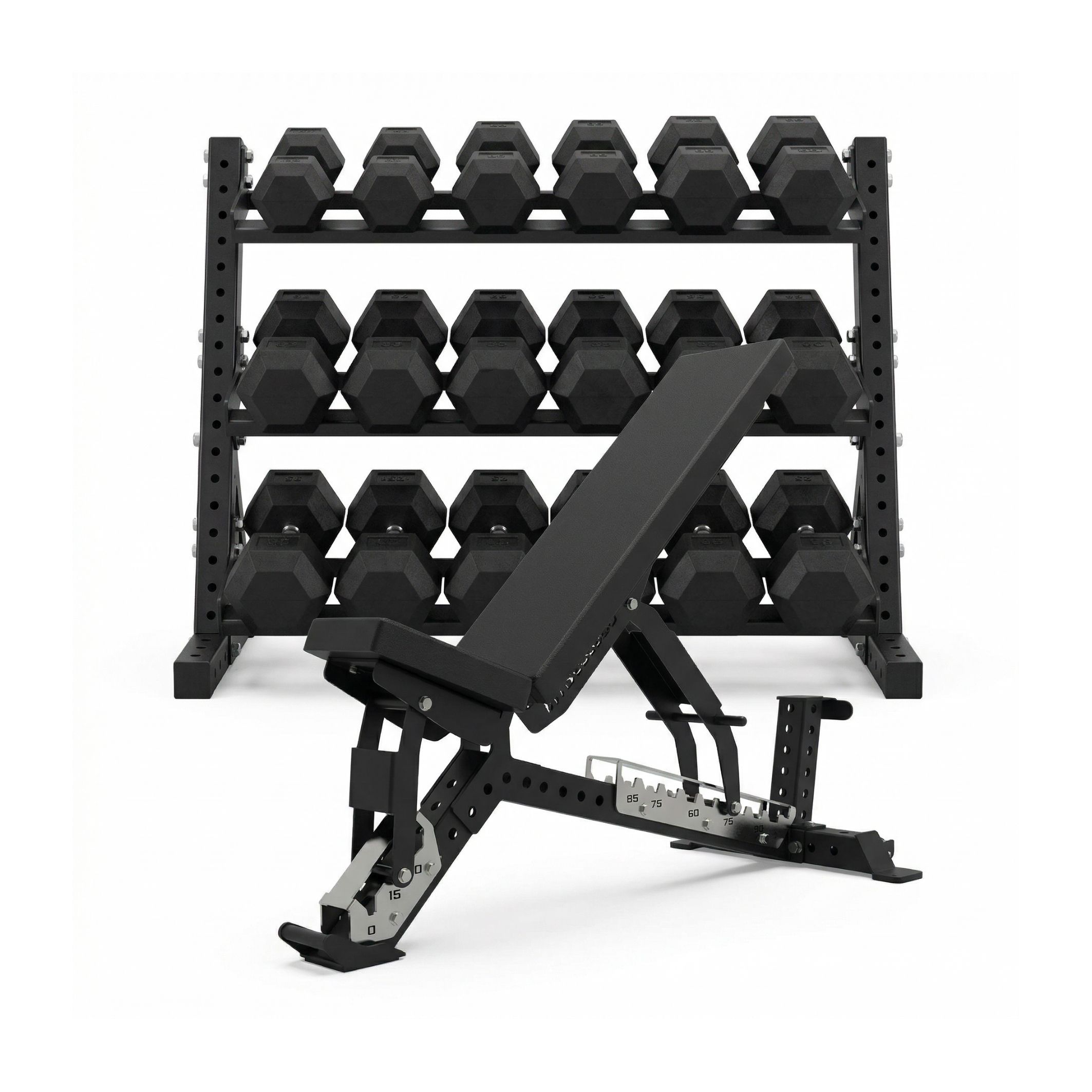 Få et komplet og pladsoptimeret træningssetup i én samlet løsning. Denne pakke kombinerer en robust, justerbar træningsbænk med et solidt håndvægtstativ og et sæt hex håndvægte fra 12,5 kg til 30 kg – klar til seriøs styrketræning fra dag ét. Du slipper for at sammensætte flere produkter selv og får i stedet et setup, hvor funktion, kvalitet og design spiller sammen. Læs mere om produkterne her: træningsbænk, håndvægtstativ og håndvægte.