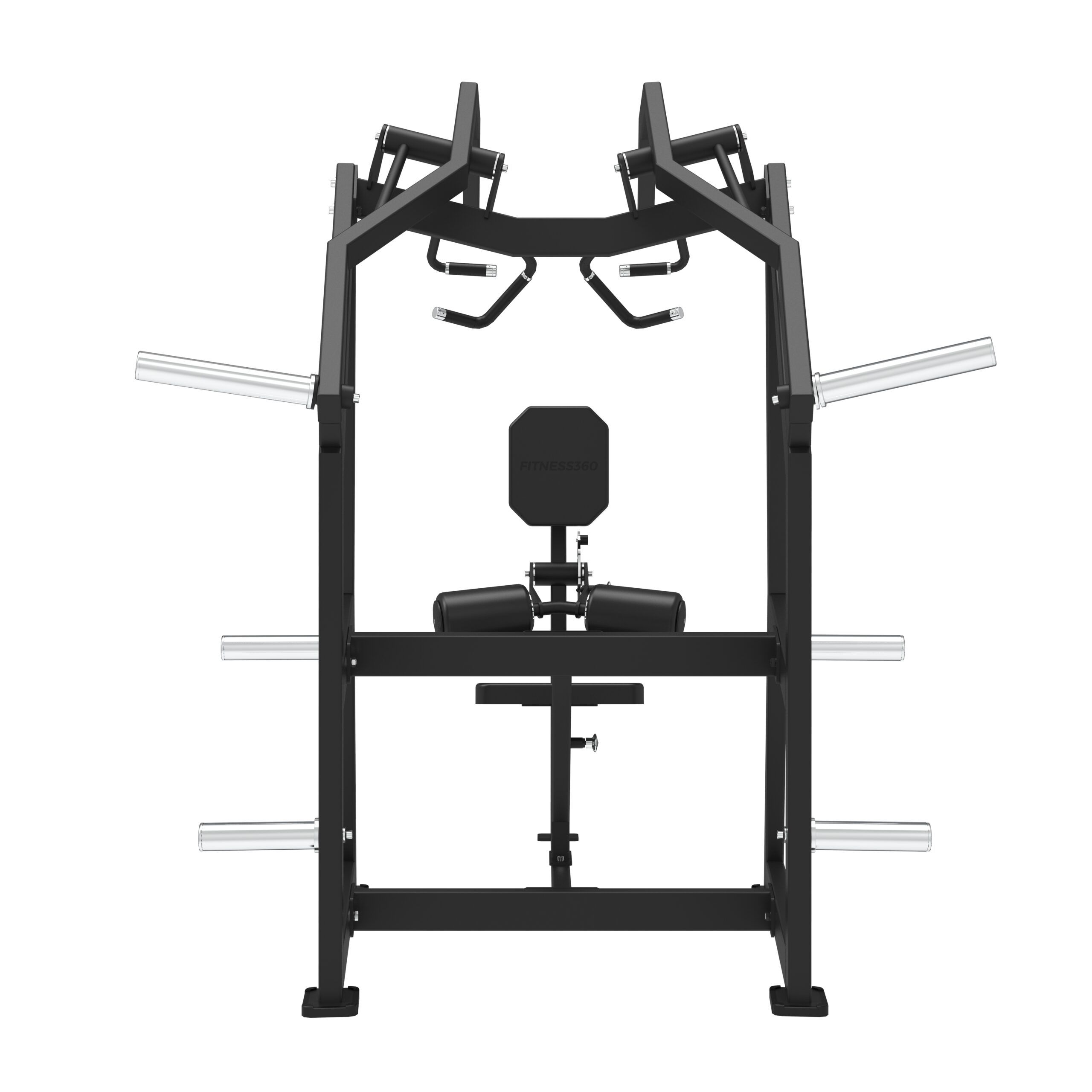Stellet er produceret i en solid stålkonstruktion med et laserskåret FITNESS360-logo. Sæderne er udført i et robust materiale med varmetrykt FITNESS360-logo. Maskinerne i denne serie er uden vægtmagasin, der er derimod påført nogle “load sleeves”, som giver brugeren fri mulighed til at vælge belastningen med vægtskiver.