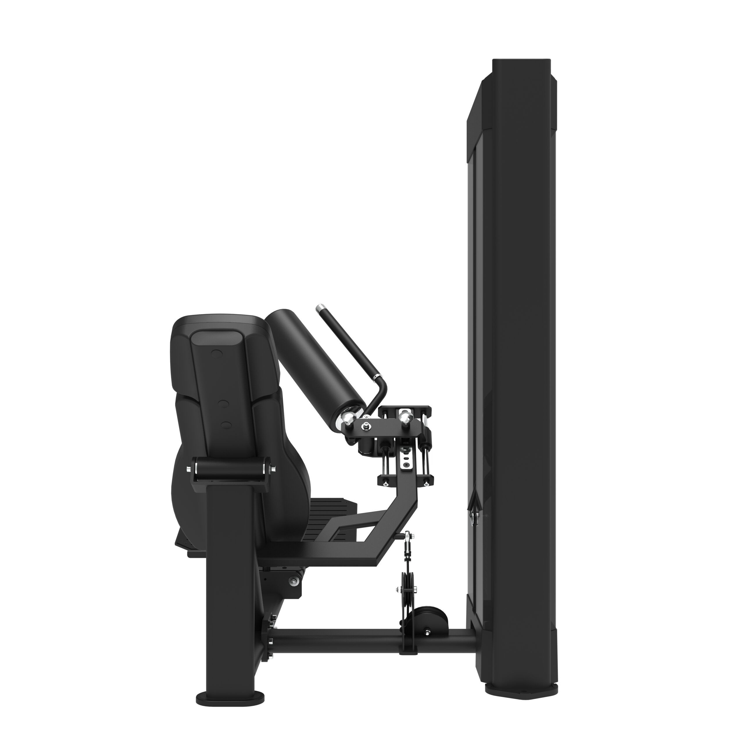 Vores professionelle Hip Thrust maskine er designet til effektiv af målrette balde- og baglårsmusklen, i en liggende position. Maskinen er udstyret med en skridsikker justerbar platform, hvor fødderne placeres. Ryglænet er tiltet og følger brugerens bevægelse under øvelsen, for at sikre korrekt form og komfort. Rullepuden er designet til at give komfort til hofterne og kan justeres i højden, så den tilpasses den enkelte bruger. Maskinen har et praktisk håndtag over rullepuden, hvor hænderne placeres for at give ekstra stabilitet og støtte under træningen. Denne funktion gør det samtidig lettere at komme ind og ud af maskinen, da håndtaget også benyttes til at løfte eller sænke puden.