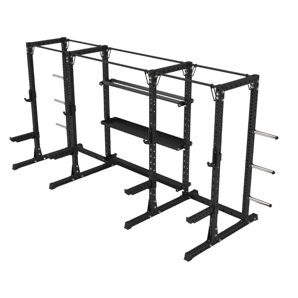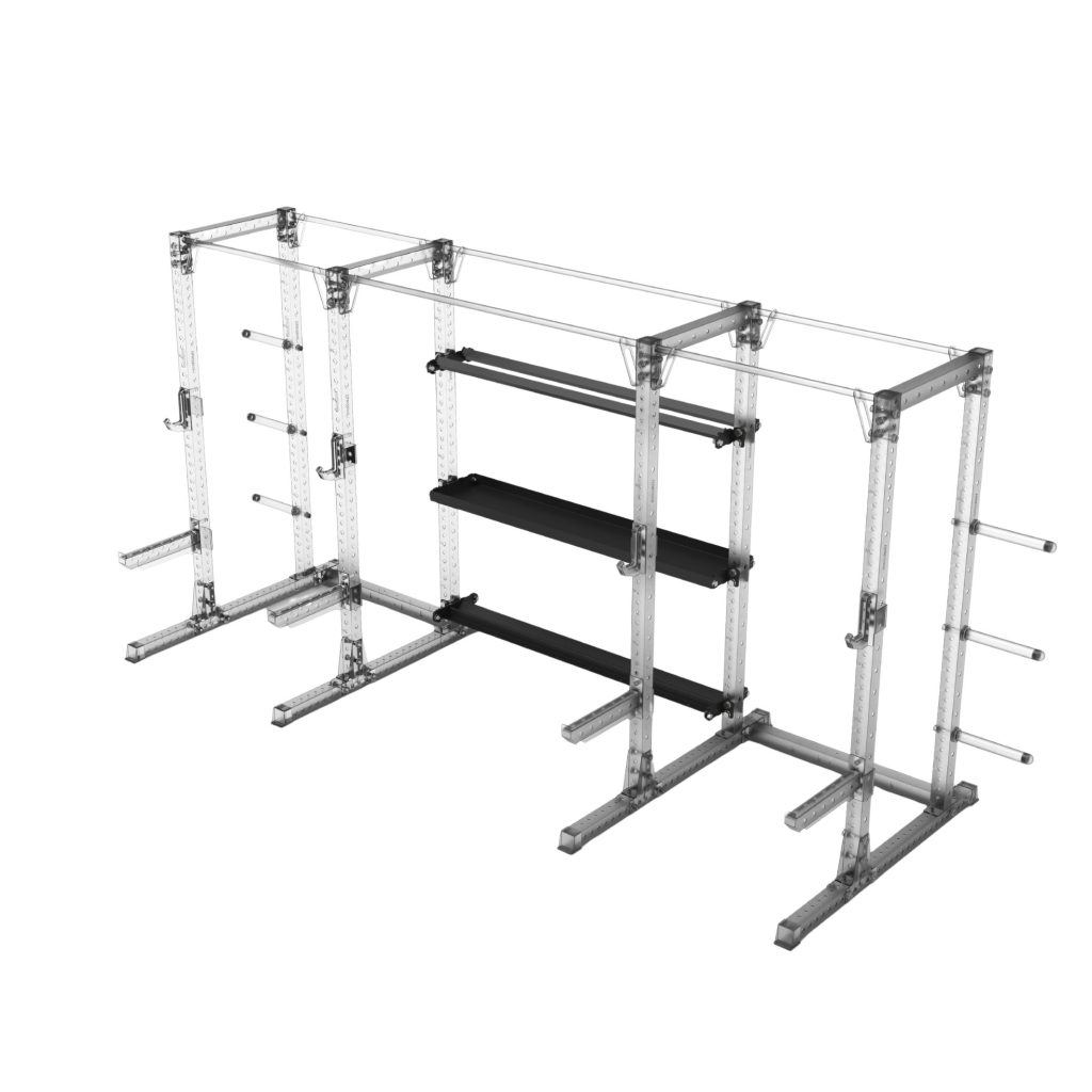 Beslagene monteres direkte på rackets stolper og giver en stabil base til hylder eller opbevaringsplader. På den måde kan du opbygge et fleksibelt system til opbevaring af dit træningsudstyr. Det gør det nemmere at holde orden i dit træningsområde og giver samtidig et mere professionelt udtryk i både home gyms og fitnesscentre.