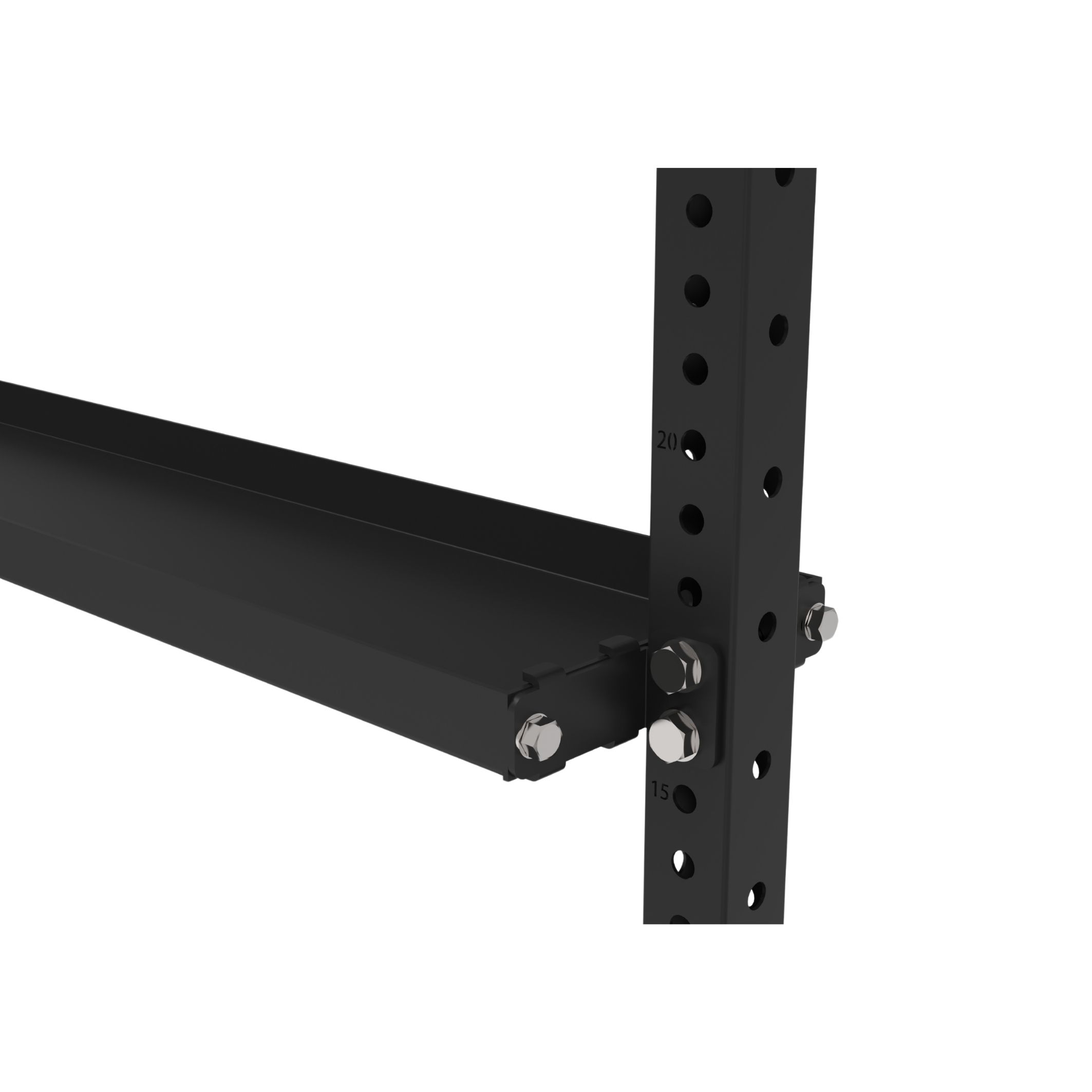Beslagene monteres direkte på rackets stolper og giver en stabil base til hylder eller opbevaringsplader. På den måde kan du opbygge et fleksibelt system til opbevaring af dit træningsudstyr. Det gør det nemmere at holde orden i dit træningsområde og giver samtidig et mere professionelt udtryk i både home gyms og fitnesscentre.