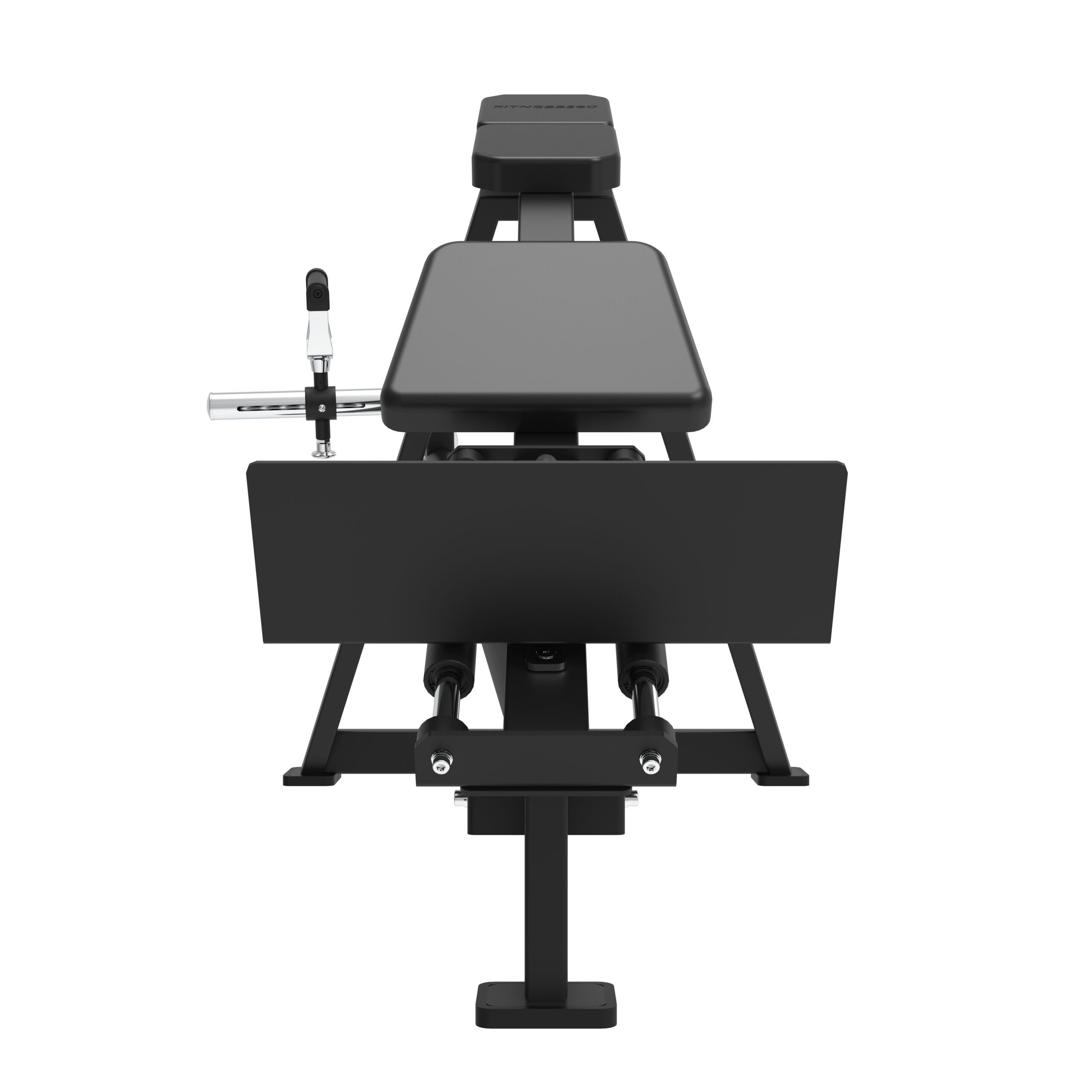 Vores professionelle Incline Row maskine er designet til effektivt at målrette rygmusklerne i en liggende position. Maskinen er udstyret med en 7-trins dobbelt justerbar grebsposition med anti-slip. Dertil en justerbar fodplade, hvilket giver brugeren mulighed for let at indstille startpositionen for øvelsen. Maskinen har en “load sleeve” på armen til belastning med alle Ø50 mm vægtskiver.