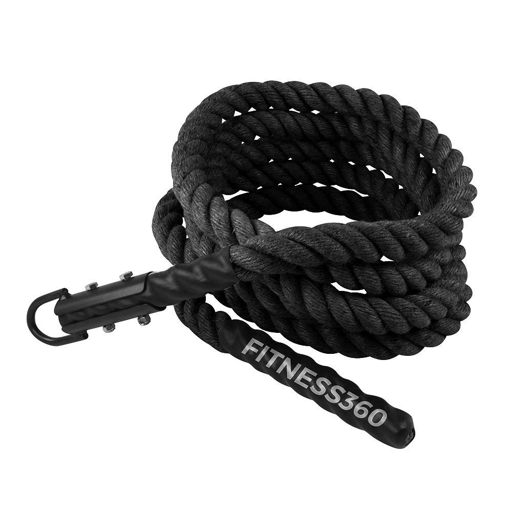 Sort klatrereb på 6 meter fra Fitness360 til at hænge op i stativ eller loft med endebeslaget i forstærket stål. Du forbinder måske et klatrereb med gymnastiktimerne, men faktisk er det en af de hårdeste måder at træne styrken i dine arme og overkrop på. Når du klatrer i reb bliver du tynget ned af din egen kropsvægt, og du er derfor afhængig af, at dine arme er stærke nok til at kunne trække din vægt. Med det solide ophæng, er vores reb klar til at hænge op i stativ eller loft med det samme! Med vores klatrereb er du sikker på et slidstærkt og langtidsholdbar reb. Enden på rebet er desuden forseglet, så rebet ikke begynder at flosse. Længden på klatrerebet er 6 meter og der kræves derfor en vis passende højde til ophæng af dette reb. Grebstykkelsen på rebet er cirka 38 mm.