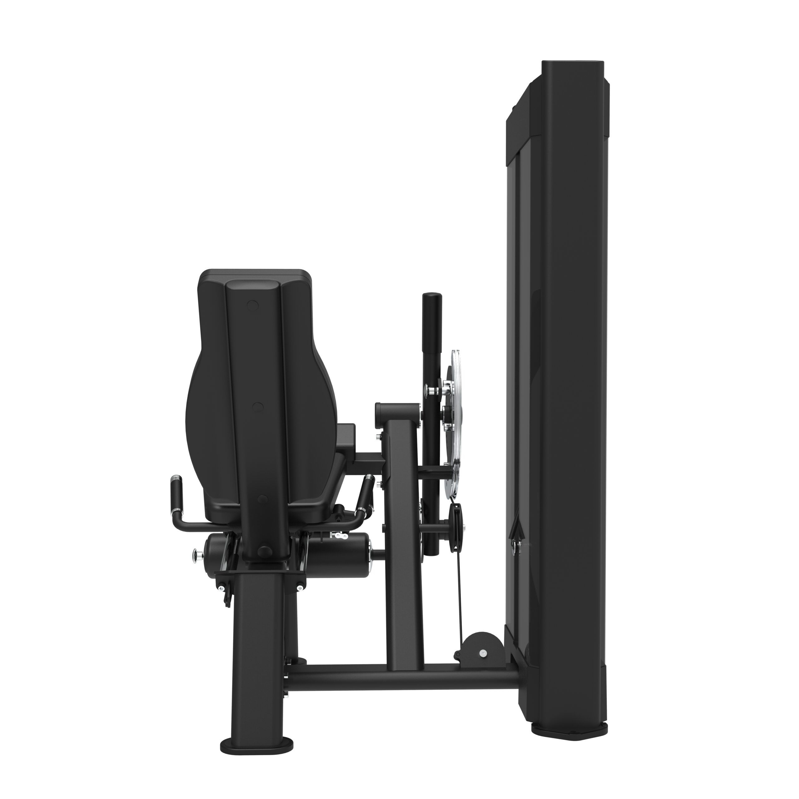 Vores professionelle Leg Extension er designet til effektivt at målrette forlårets muskler i en siddende position. Maskinen er udstyret med et justerbart ryglæn som støtter ryggen og reducerer belastningen på lænden, så du kan fokusere på at udføre øvelsen korrekt. Maskinen har 5 justerbare startpositioner, således brugeren opnår stor fleksibilitet og selv kan bestemme bevægelsesområdet for øvelsen. Den justerbare rullepude gør maskinen brugervenlig, så den kan tilpasses til mange forskellige slags kropstyper.