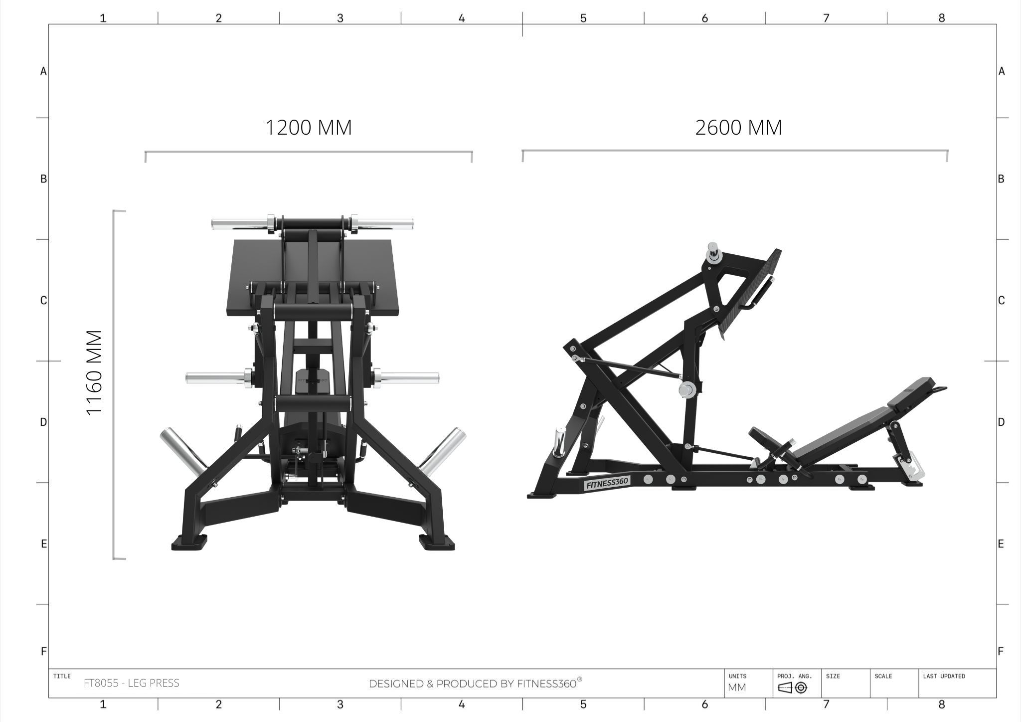 Stellet er produceret i en solid stålkonstruktion med et laserskåret FITNESS360-logo. Sæderne er udført i et robust materiale med varmetrykt FITNESS360-logo. Maskinerne i denne serie er uden vægtmagasin, der er derimod påført nogle “load sleeves”, som giver brugeren fri mulighed til at vælge belastningen med vægtskiver.