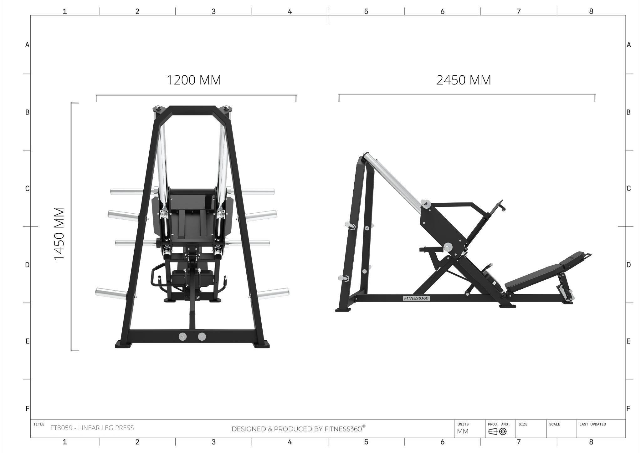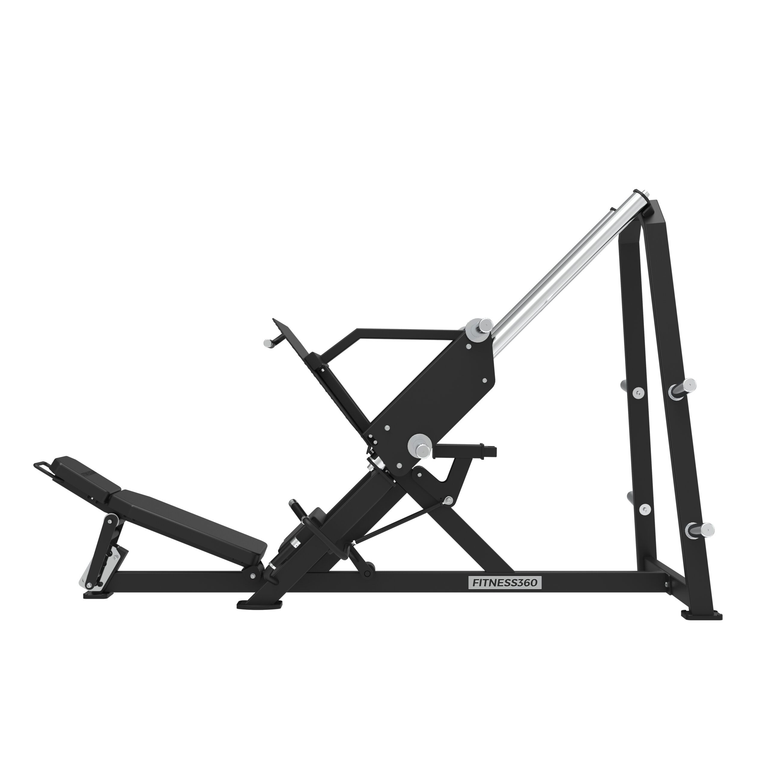 Stellet er produceret i en solid stålkonstruktion med et laserskåret FITNESS360-logo. Sæderne er udført i et robust materiale med varmetrykt FITNESS360-logo. Maskinerne i denne serie er uden vægtmagasin, der er derimod påført nogle “load sleeves”, som giver brugeren fri mulighed til at vælge belastningen med vægtskiver.