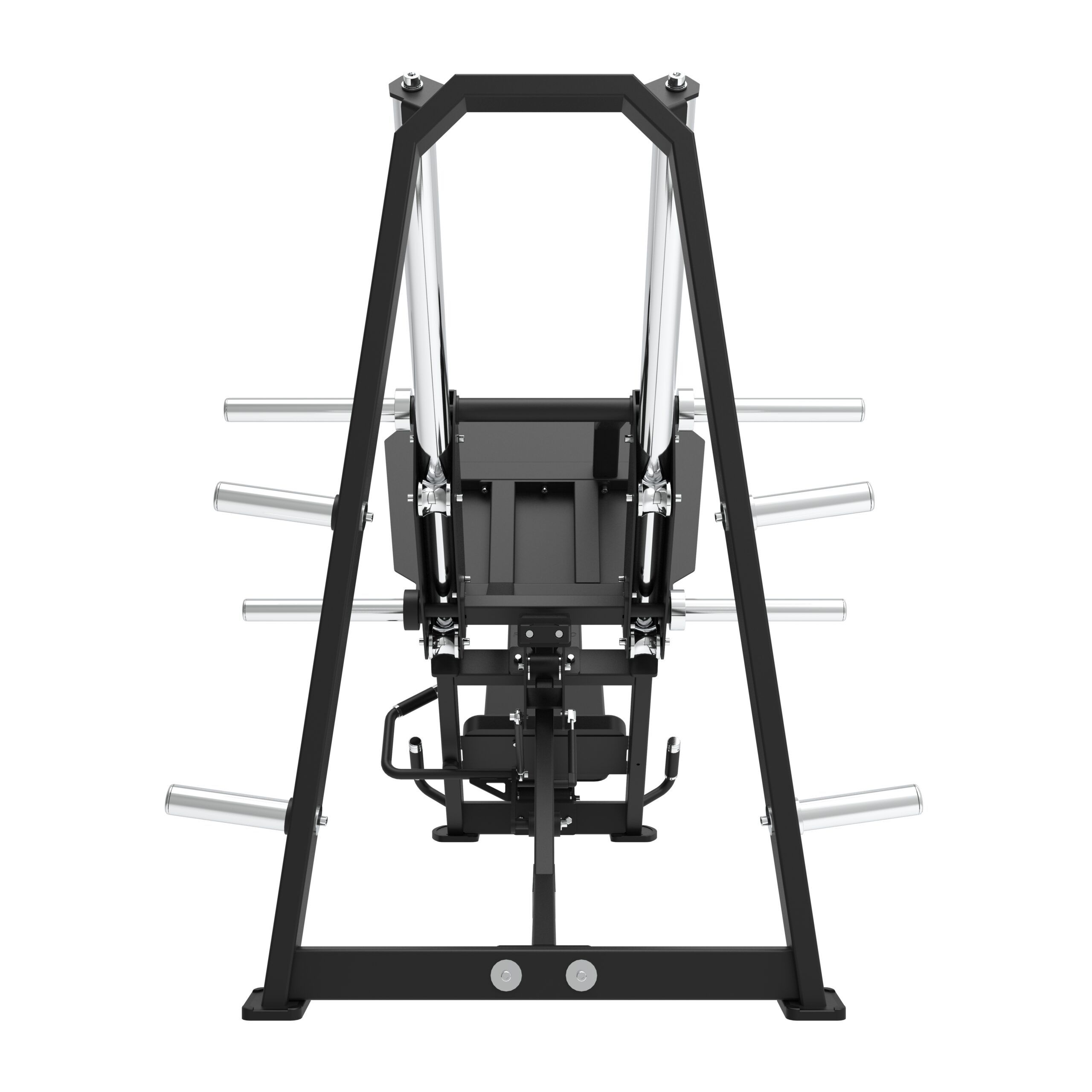 Vores professionelle Linear Leg Press maskine er designet til effektivt at målrette benmusklerne i en siddende position. Maskinen er udstyret med et 3-trins justerbart sæde, hvilket giver brugeren mulighed for let at indstille startpositionen for øvelsen. Maskinen har fire “load sleeves” på armene til belastning med alle Ø50 mm vægtskiver. Der er desuden monteret to vægtskive pins på hver side af maskinen til opbevaring af vægtskiver.