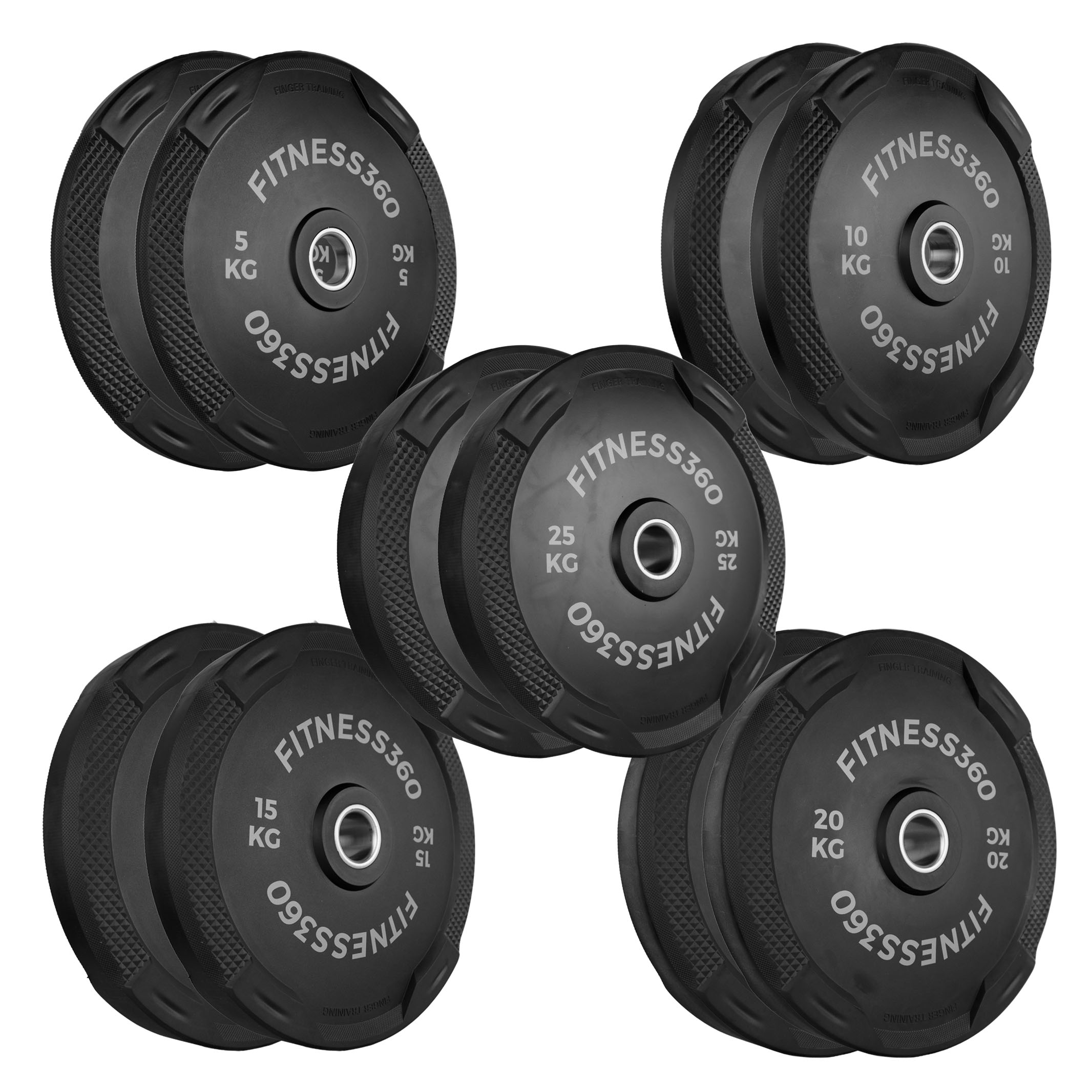 Du får i denne pakke 150 kg af vores Apex Bumper plates med følgende vægtskiver: