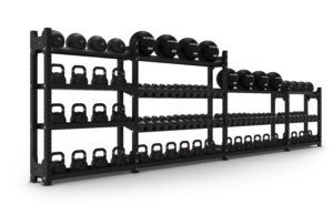 Når der skal vælges en passende opbevaringsløsning, bør du overveje hvilke behov din reol skal løse, og hvor meget plads du har at gøre med. Har du eksempelvis brug for en reol, kun til opbevaring af én slags udstyr (eksempelvis håndvægte eller kettlebells), eller har du også brug for at kombinere det med opbevaring til eksempelvis vægtskiver, bolde eller lignende? Vores reolsystemer kan udbygges og ombygges løbende, alt efter dine behov, så du er ikke fastlåst på den opbevaringsløsning du vælger fra start. Desuden er det også værd at overveje, om du har begrænset gulvplads eller vægplads. Et opbevaringssystem bygget ud fra siderne med 3 niveauer er eksempelvis ideel til opbevaring af håndvægte og kettlebells, hvor der skal være plads til spejle eller vinduer over, mens opbevaringssystemet bygget ud fra vores stolper er ideelle til multiopbevaring langs en væg, hvor de optager lidt gulvplads ud i rummet.