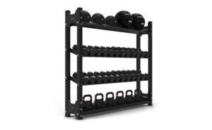 Når der skal vælges en passende opbevaringsløsning, bør du overveje hvilke behov din reol skal løse, og hvor meget plads du har at gøre med. Har du eksempelvis brug for en reol, kun til opbevaring af én slags udstyr (eksempelvis håndvægte eller kettlebells), eller har du også brug for at kombinere det med opbevaring til eksempelvis vægtskiver, bolde eller lignende? Vores reolsystemer kan udbygges og ombygges løbende, alt efter dine behov, så du er ikke fastlåst på den opbevaringsløsning du vælger fra start. Desuden er det også værd at overveje, om du har begrænset gulvplads eller vægplads. Et opbevaringssystem bygget ud fra siderne med 3 niveauer er eksempelvis ideel til opbevaring af håndvægte og kettlebells, hvor der skal være plads til spejle eller vinduer over, mens opbevaringssystemet bygget ud fra vores stolper er ideelle til multiopbevaring langs en væg, hvor de optager lidt gulvplads ud i rummet.
