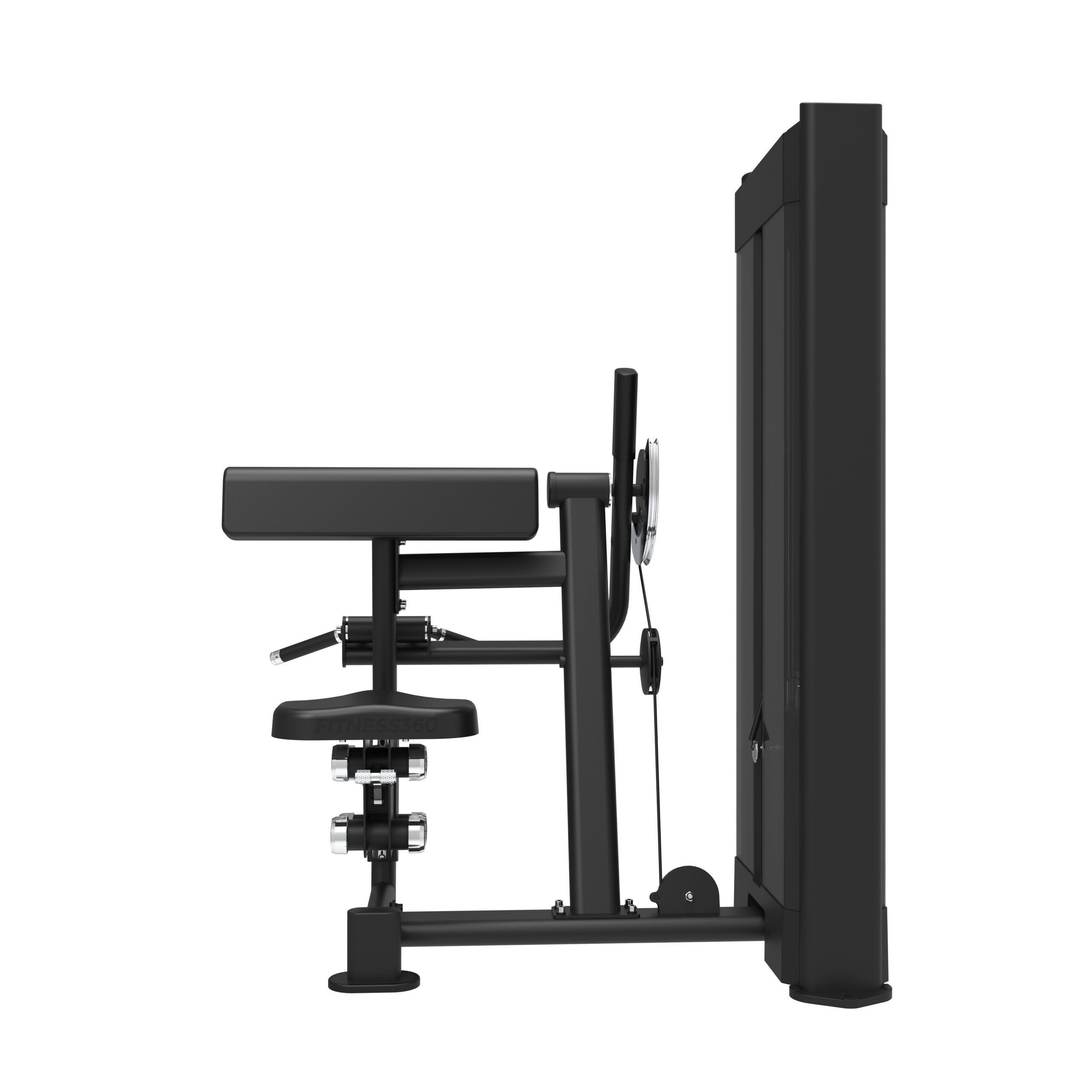 Vores professionelle Seated Biceps Curl maskine er designet til effektiv at målrette bicepsmusklen i en siddende position. Maskinen har et justerbart sæde samt en polstret støttepude til armene, hvilket sikrer en stabil base og minimerer risikoen for at “snyde” under øvelsen. Den vinklede støttepude gør det nemt at finde den mest komfortable og ergonomisk korrekte position, samtidig med at det giver optimal støtte og muliggør maksimal isolering af biceps.