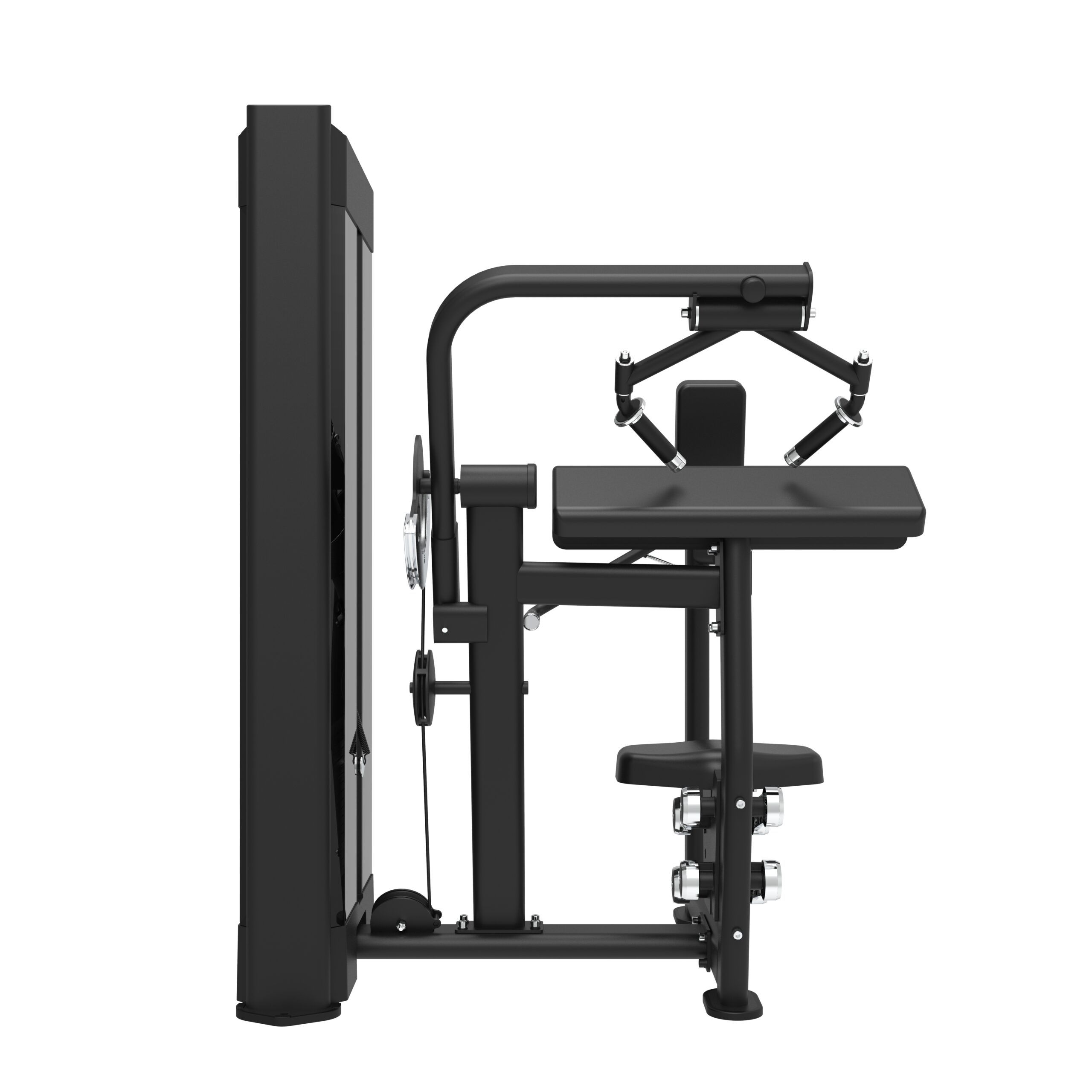 Vores professionelle Seated Triceps Extension maskine er designet til effektiv at målrette tricepsmusklen i en siddende position. Maskinen har et justerbart sæde, en polstret støttepude til armene, samt en justerbar støttepude til ryggen, hvilket sikrer en stabil base og minimerer risikoen for at “snyde” under øvelsen. Den vinklede støttepude gør det nemt at finde den mest komfortable og ergonomisk korrekte position, samtidig med at det giver optimal støtte og muliggør maksimal isolering af triceps.