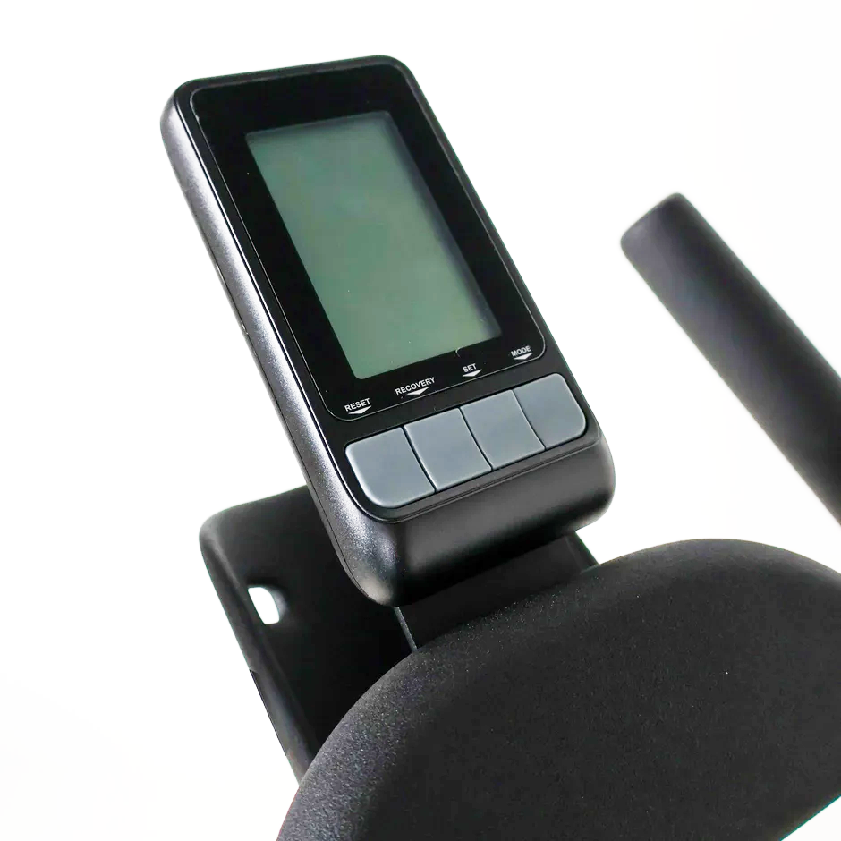 Spinningscyklen er udstyret med et integreret LCD-display, der giver et klart overblik over træningen. Displayet betjenes via et intuitivt knap-panel og viser relevante træningsdata, så brugeren nemt kan følge sin indsats og progression undervejs.