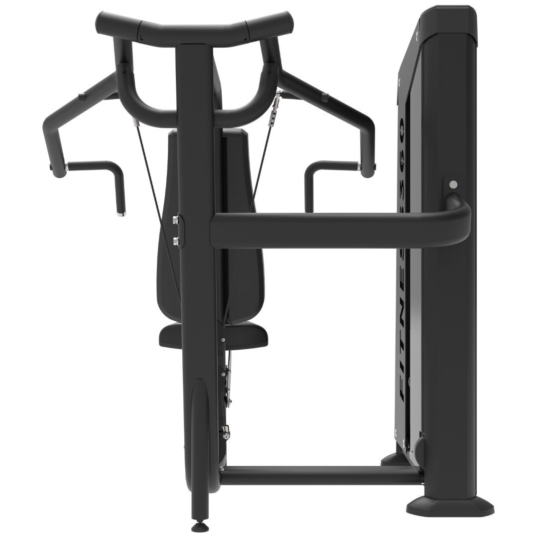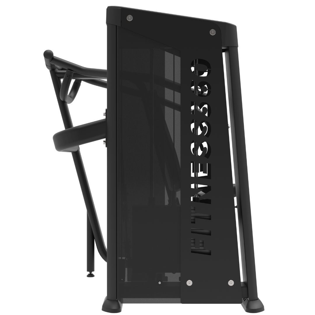 Maskinerne i denne serie har en minimalistisk og stilren “kasse” til vægtmagasinet. Kassen består af mørktonet plexiglas og en stålplade med laserskåret Fitness360 logo. Kassen fremstår således meget “luftig” og giver et eksklusivt udtryk i centeret.