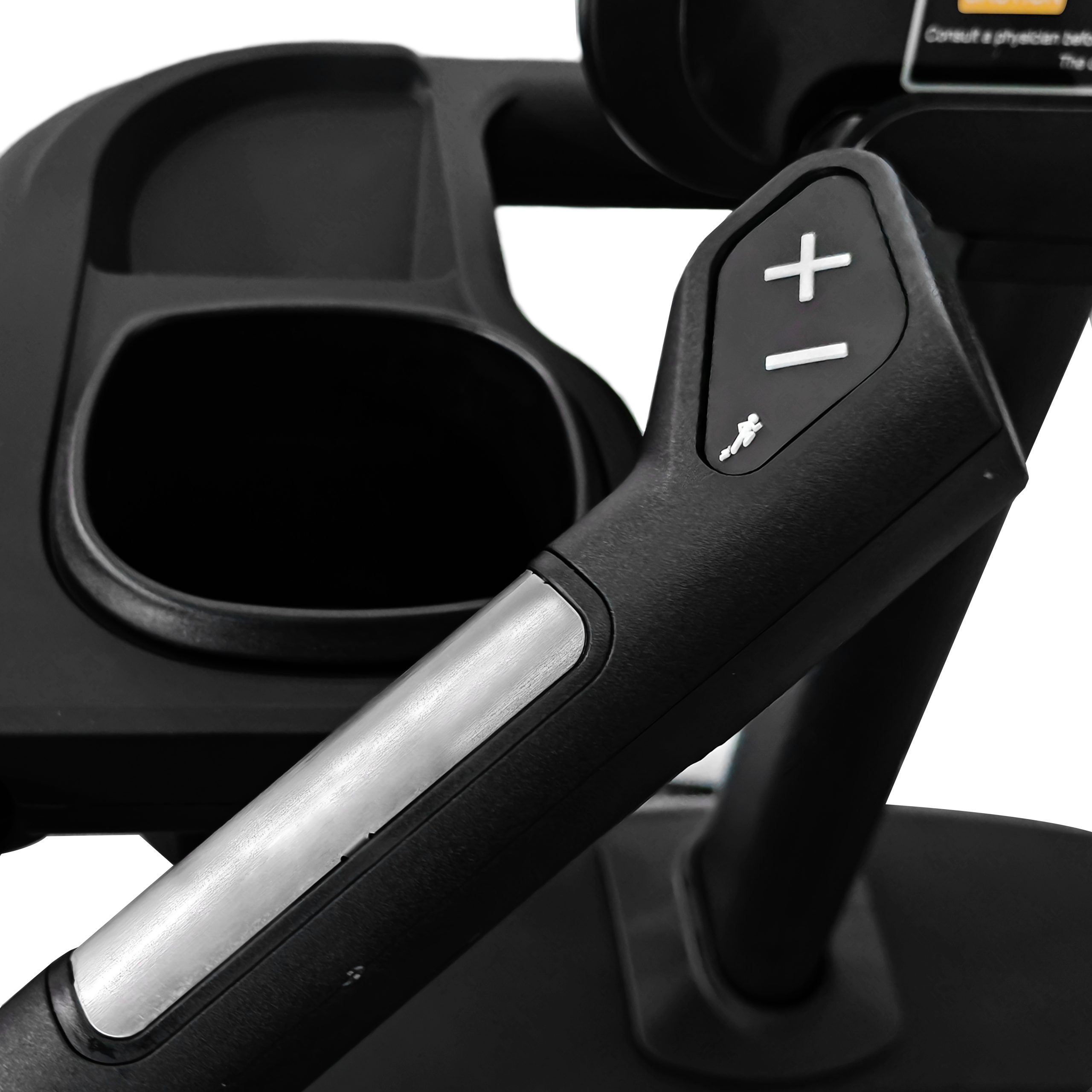 Trappemaskinen er udstyret med pulsmålere i håndtagene, samt hurtig adgang til hastighed, start og stop.