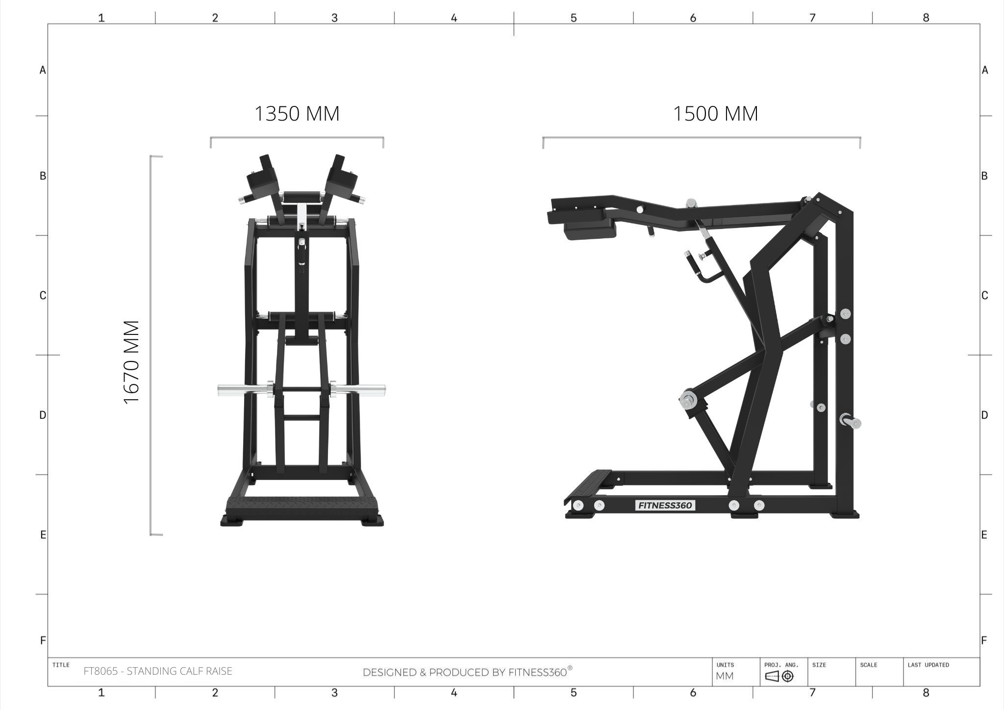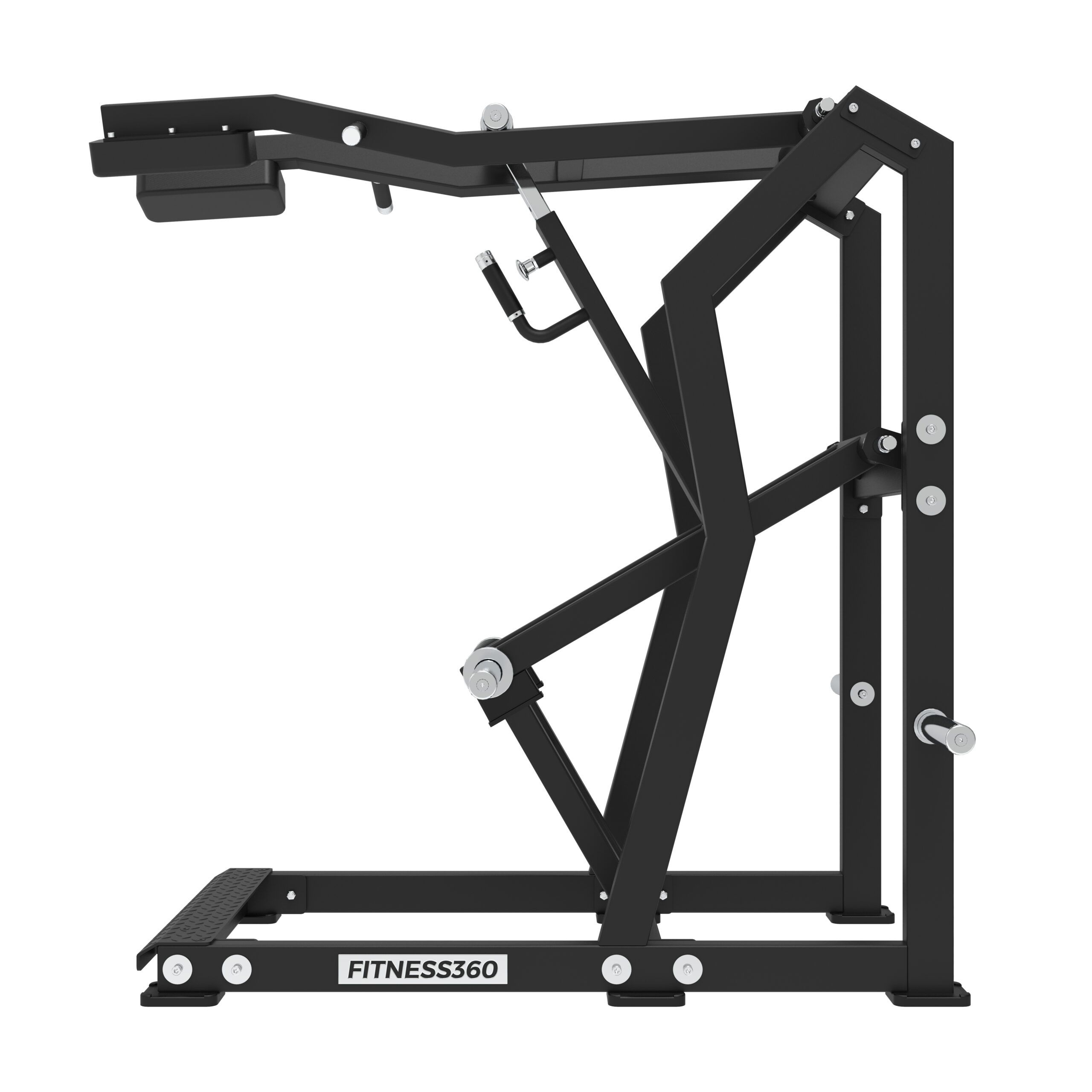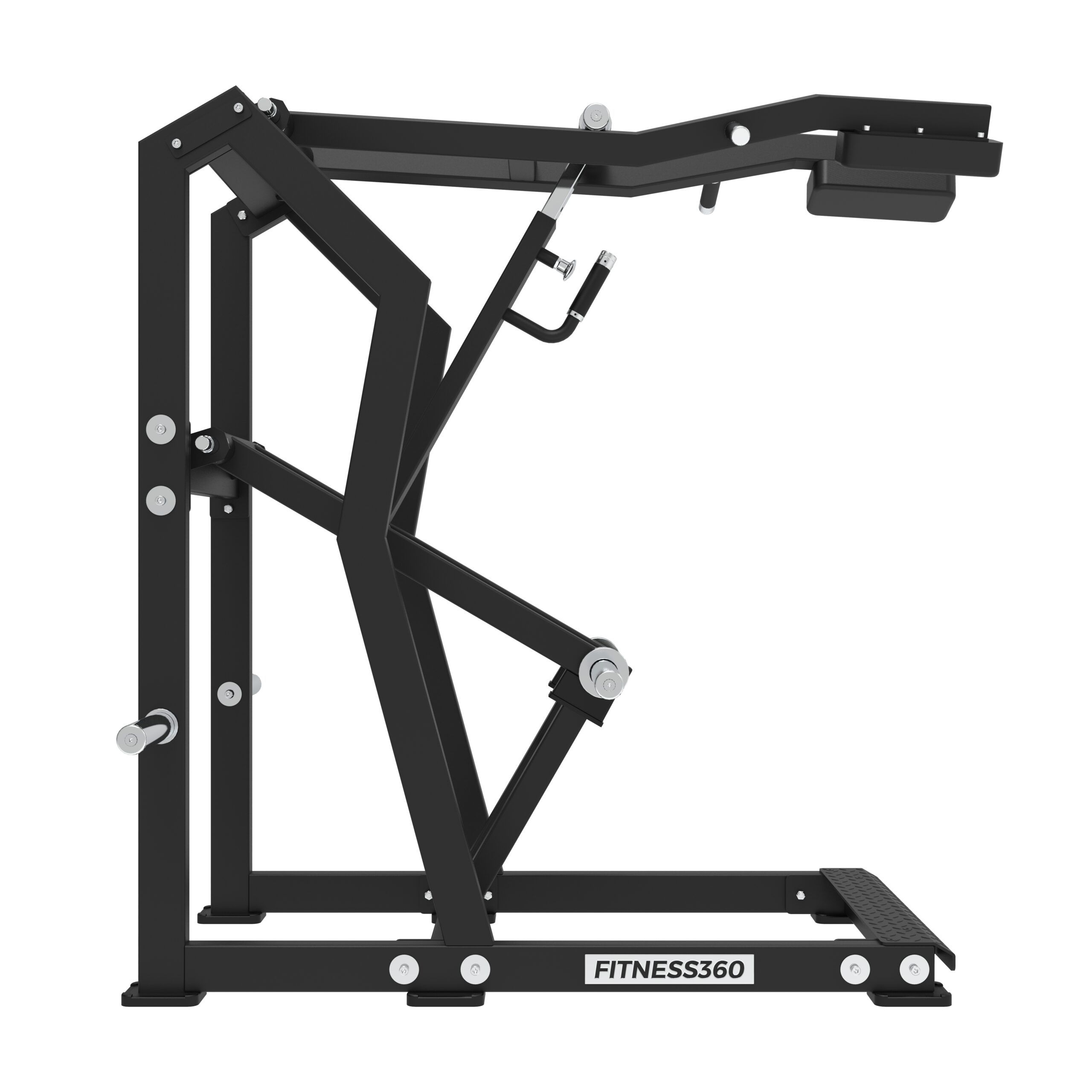 Stellet er produceret i en solid stålkonstruktion med et laserskåret FITNESS360-logo. Sæderne er udført i et robust materiale med varmetrykt FITNESS360-logo. Maskinerne i denne serie er uden vægtmagasin, der er derimod påført nogle “load sleeves”, som giver brugeren fri mulighed til at vælge belastningen med vægtskiver.