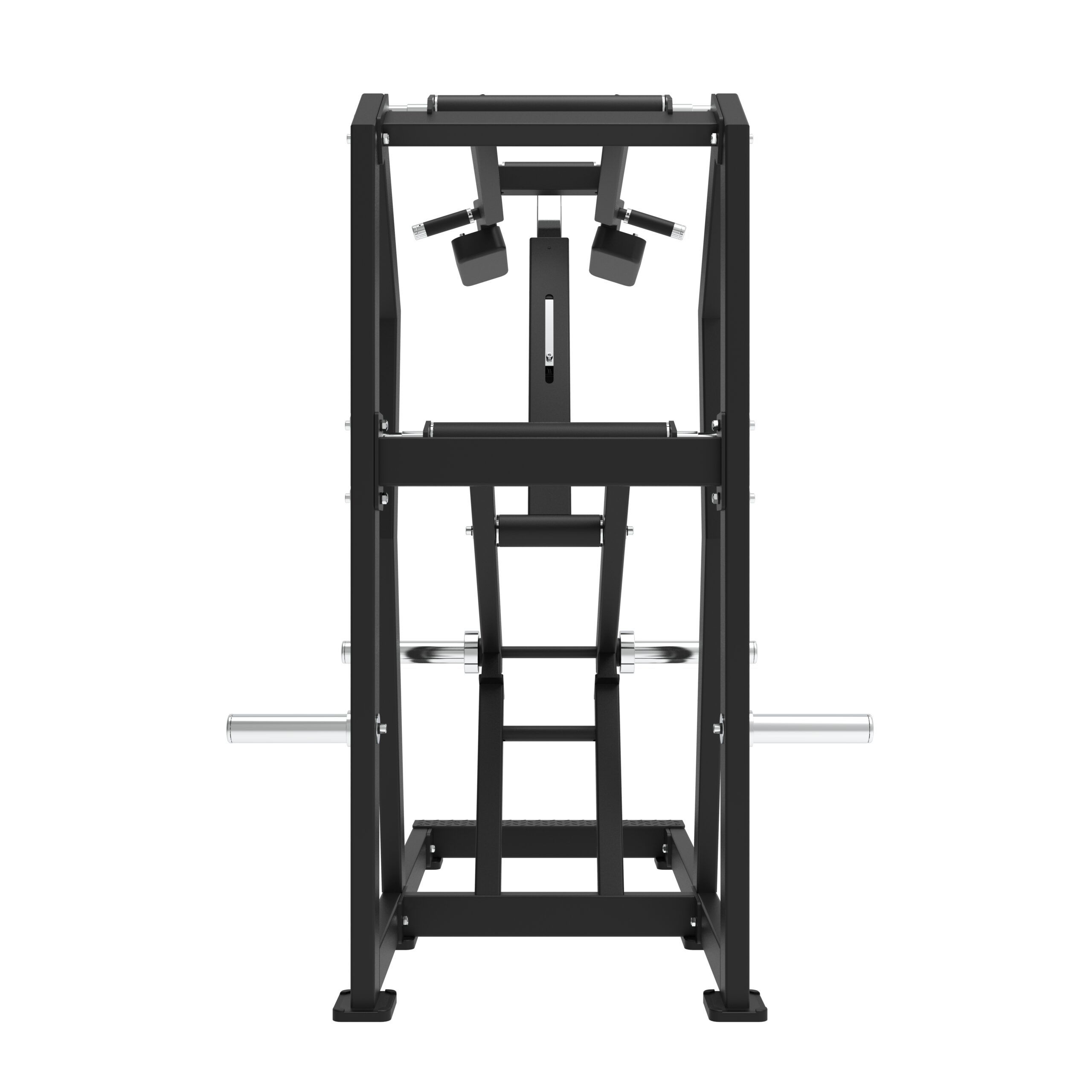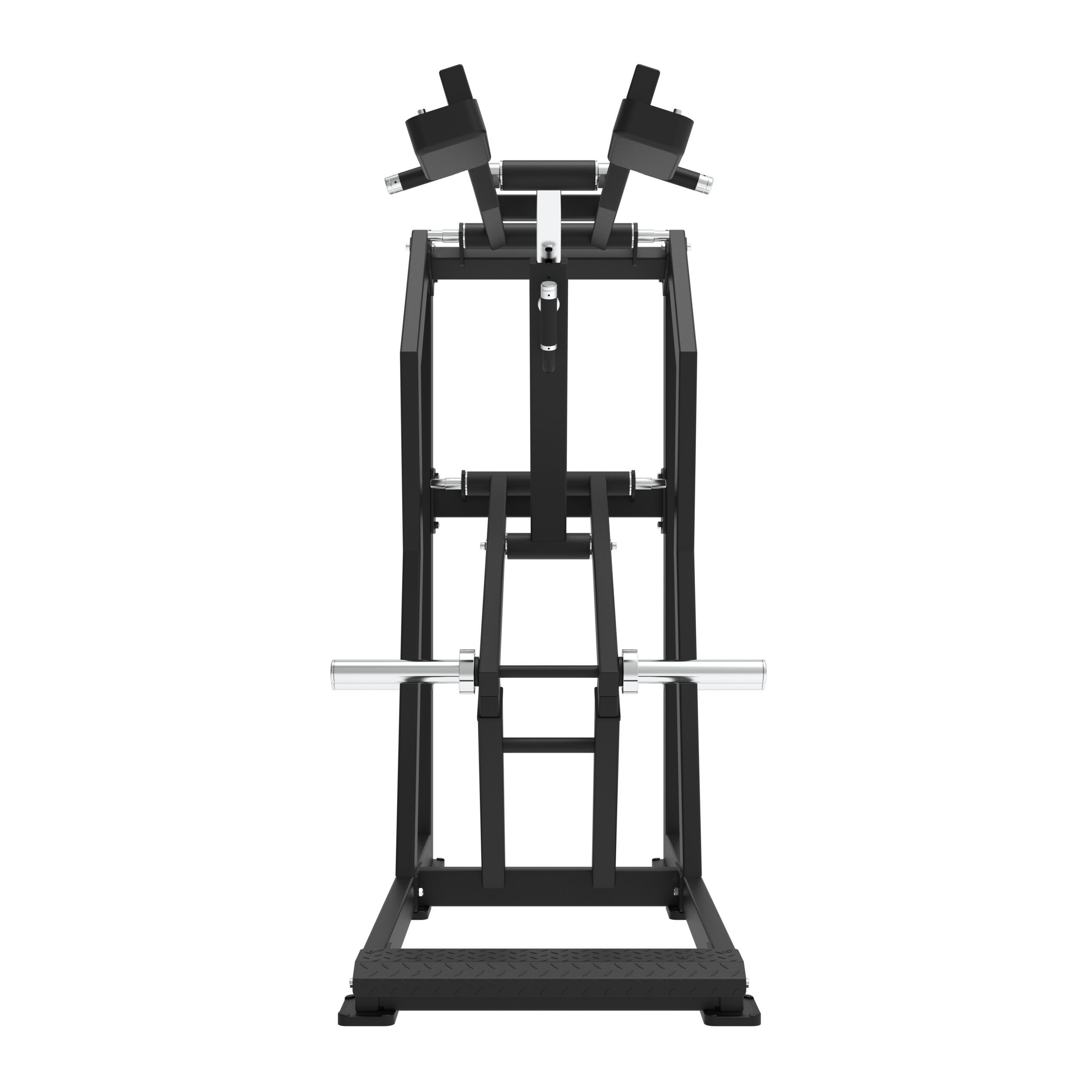 Vores professionelle Standing Calf Raise maskine er designet til effektivt at målrette lægmusklerne i en stående position. Maskinen er udstyret med en grebsposition med anti-slip samt justerbare polstrede skulderpuder, hvilket giver brugeren mulighed for let at indstille startpositionen for øvelsen. Maskinen har to “load sleeves” til belastning med alle Ø50 mm vægtskiver. Der er desuden monteret én vægtskive pin på hver side af maskinen til opbevaring af vægtskiver.
