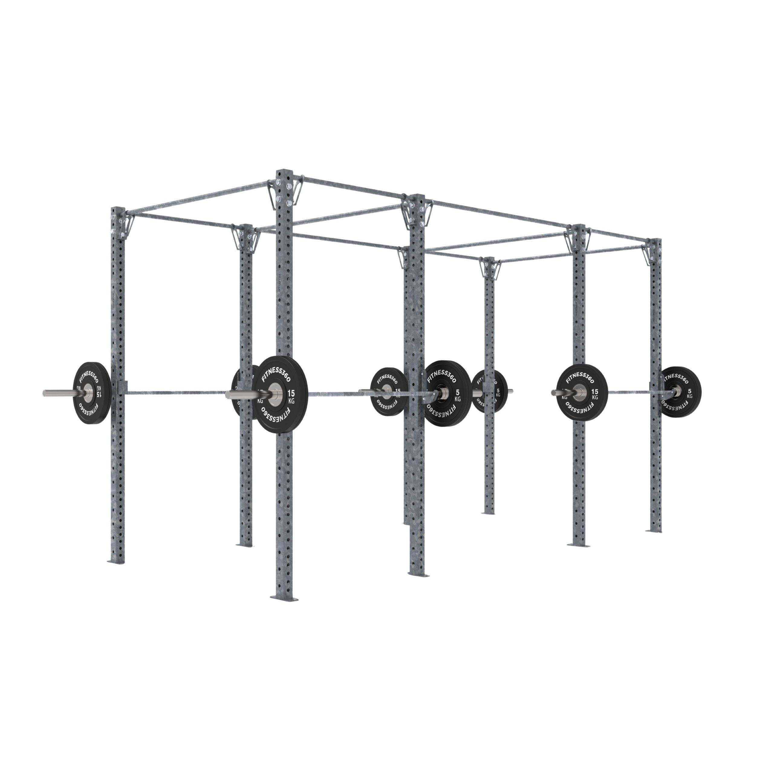 Rigget består af i alt 8 stolper med en højde på 256 cm, kombineret med pull up bars og forbindelser, der skaber 4 komplette træningsstationer. Med en samlet længde på 426 cm og en dybde på ca. 188 cm er der rigeligt med plads til både styrketræning, funktionelle øvelser og holdtræning – uden at gå på kompromis med sikkerhed eller bevægelsesfrihed. Stolperne skal fastgøres i gulvet.