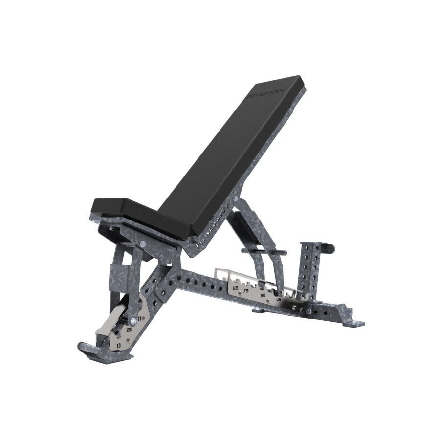 Bænkens ryglæn kan justeres i 10 positioner fra 0° til 85°. Bænkens sæde kan justeres i 3 positioner fra 0° til 30°. Ønsker man decline grader, anbefaler vi at smide en bumper plate eller lignende under den forreste fod. Vi har fravalgt decline muligheden på denne model, da vi har vægtet stabilitet og vægtbelastning højere.