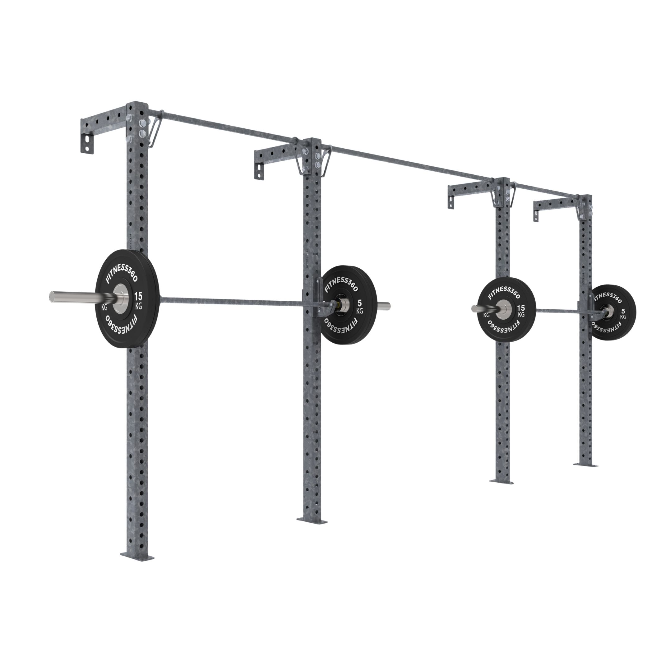 Rigget består af flere stolper med en højde på 216 cm, kombineret med pull up bars og forbindelser, der skaber 2 komplette træningsstationer. Med en samlet bredde på ca. 426 cm og en dybde på 75 cm får du et effektivt styrketræningssetup, der monteres direkte på væggen og optager minimal plads ud i rummet. De vægmonterede forbindelser fungerer samtidig som stabilisatorer og bidrager til en sikker og robust konstruktion.