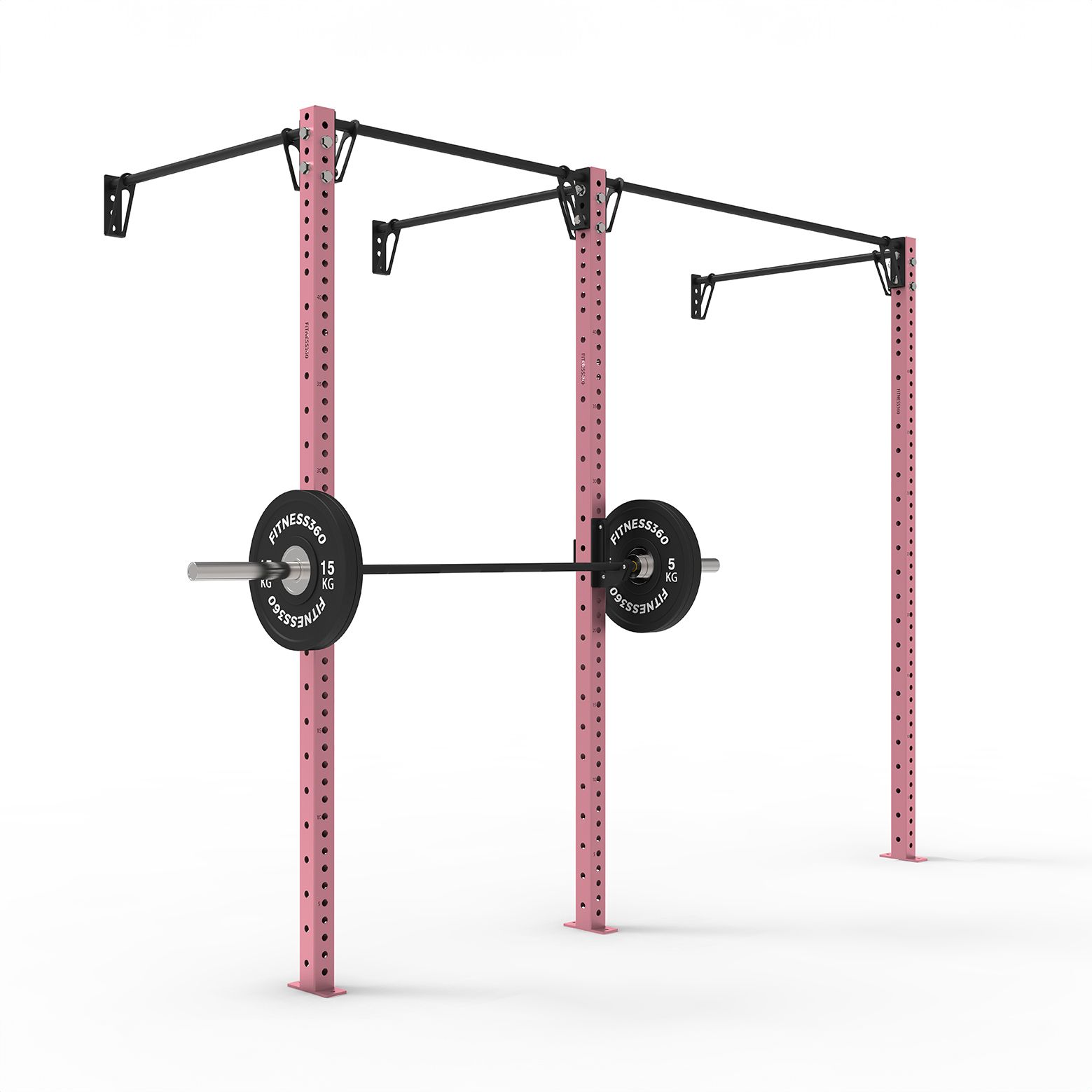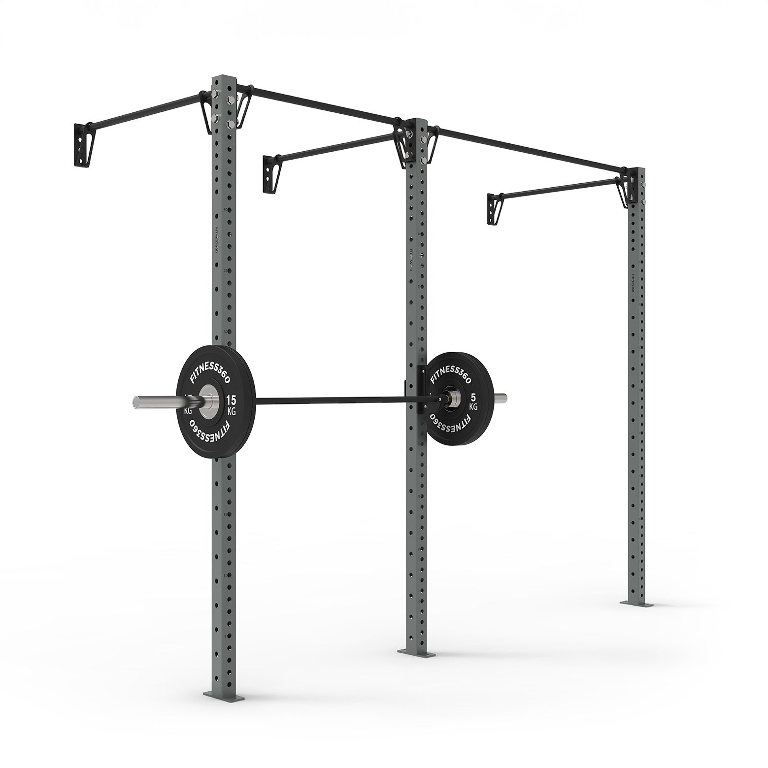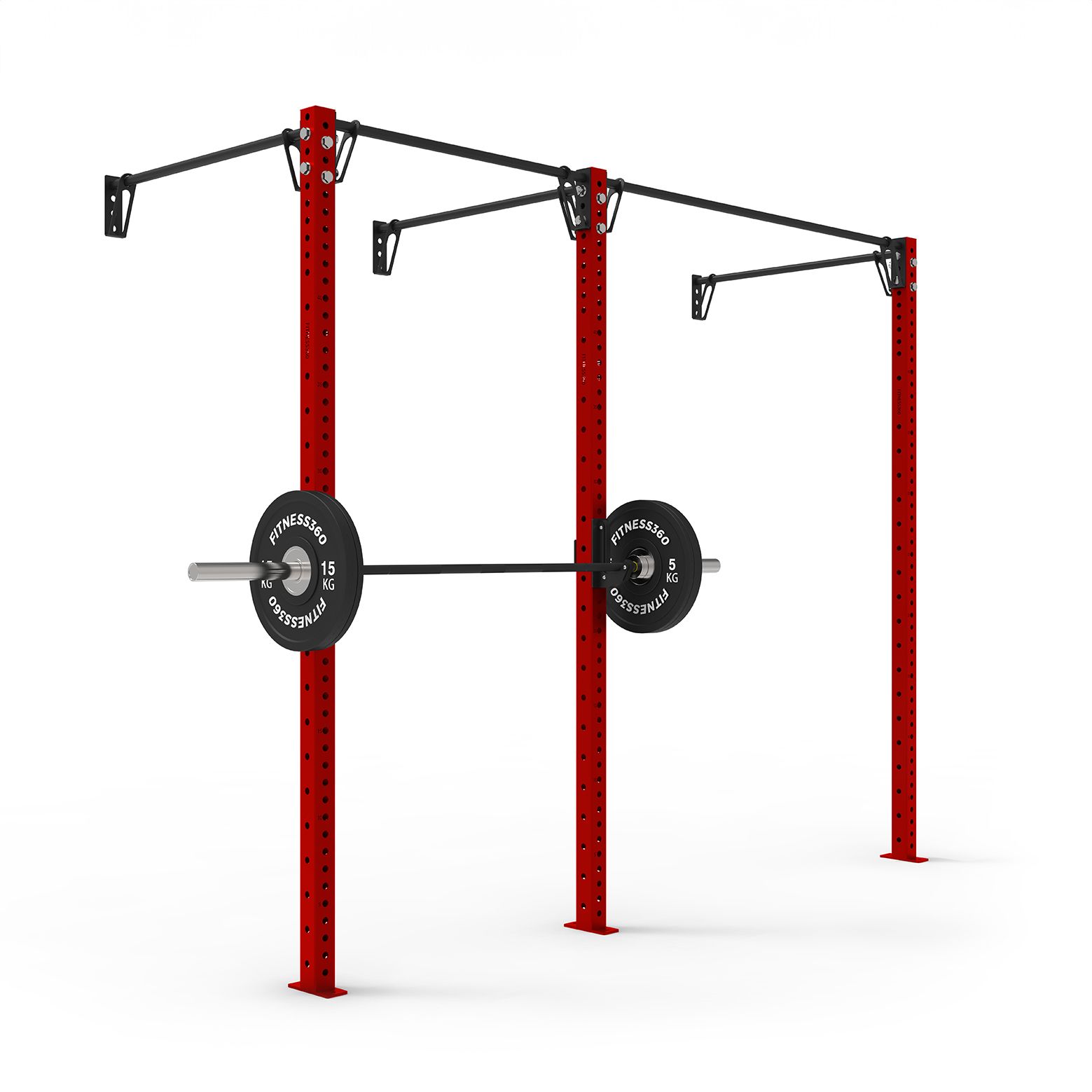 Dette vægmonteret rig består af 3 stk. stolper på 256 cm, 4 stk. pull up bars på 108 cm og 1 stk. pull up bar på 180 cm. De inderste bars skal monteres i væggen og fungerer som stabilisatorer.