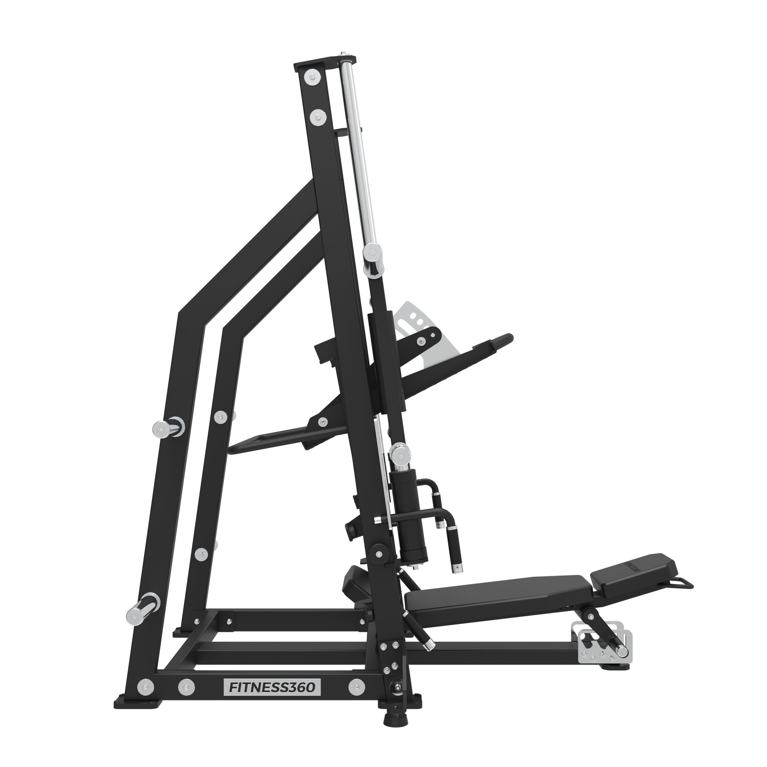 Stellet er produceret i en solid stålkonstruktion med et laserskåret FITNESS360-logo. Sæderne er udført i et robust materiale med varmetrykt FITNESS360-logo. Maskinerne i denne serie er uden vægtmagasin, der er derimod påført nogle “load sleeves”, som giver brugeren fri mulighed til at vælge belastningen med vægtskiver.